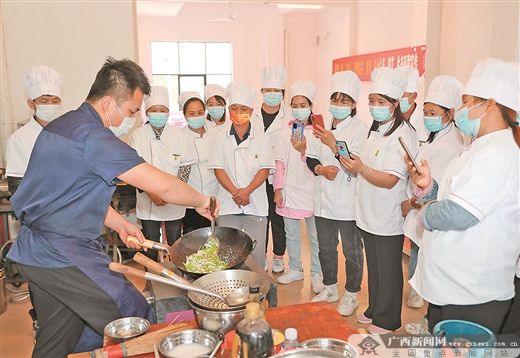 5月20日,2022年粤桂就业结对帮扶·助推侗乡乡村振兴“粤菜师傅”培训班在三江侗族自治县古宜镇南站社区举行,向易地搬迁群众进行为期15天的中式烹饪技能培训,让群众“一技在手,就业无忧”。 龚普康 摄