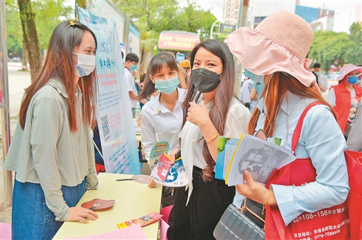 5月20日,合浦县“就业直通车”下乡巡回招聘活动来到廉州镇,携21家企业为当地群众提供2000多个就业岗位,在拓宽就业渠道的同时,帮助企业解决招工难题。 林启波 摄