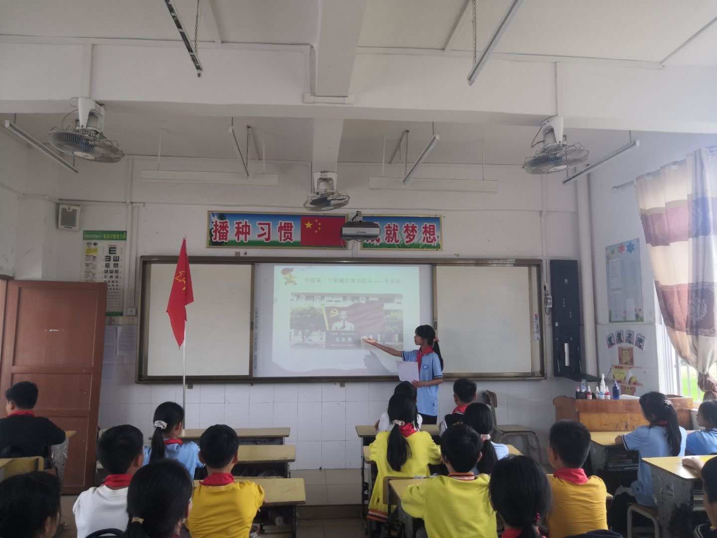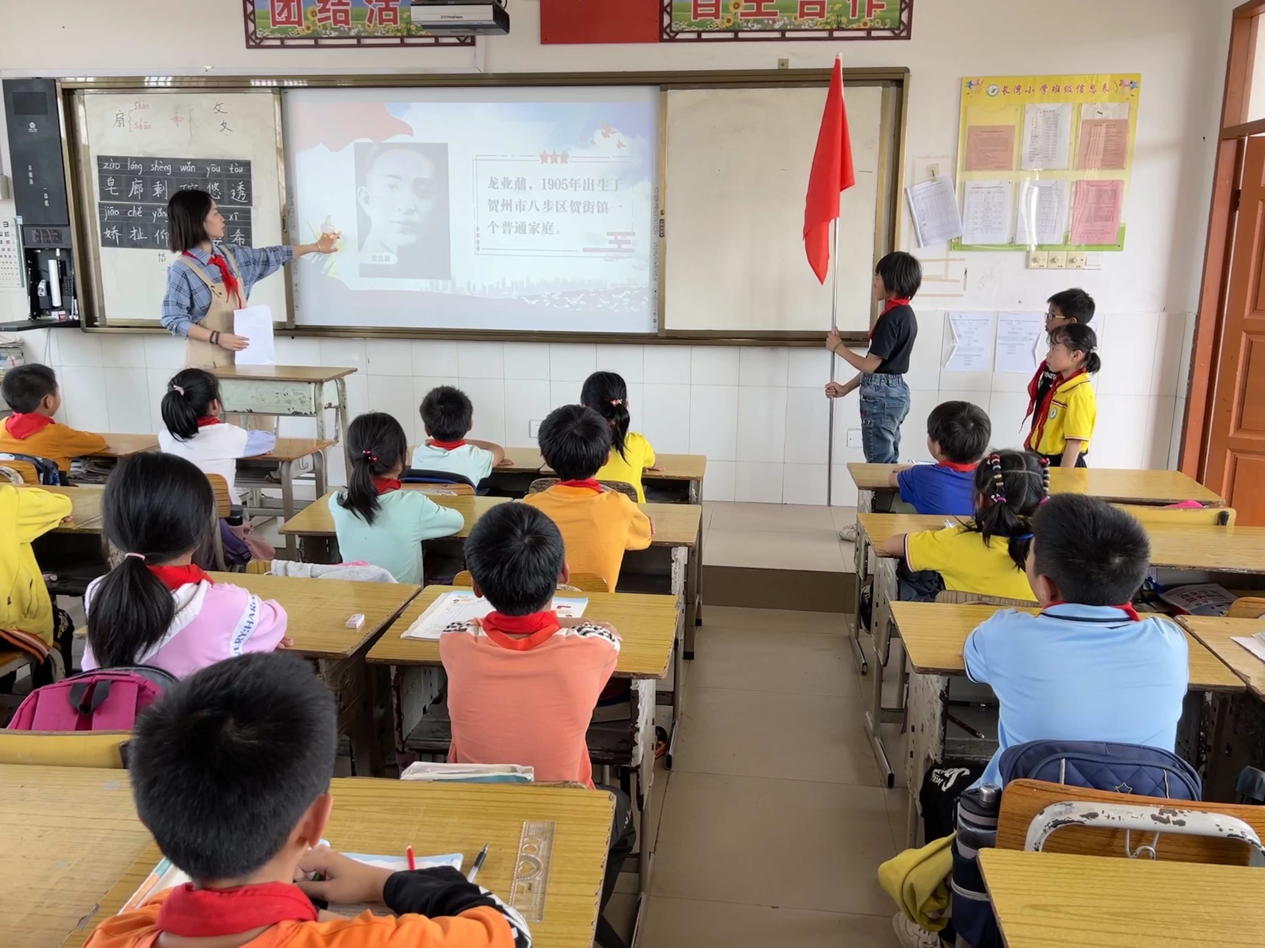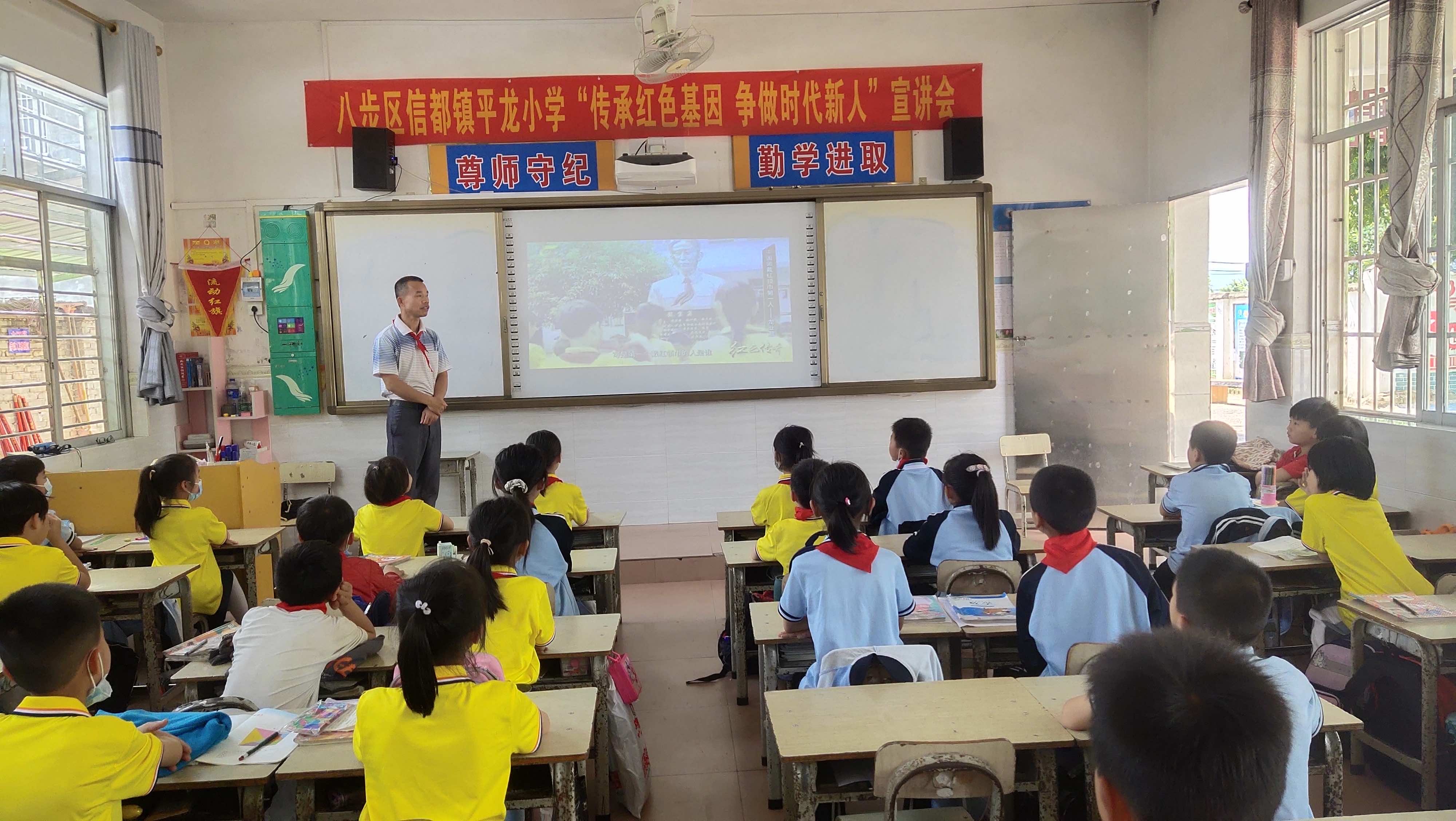 桂岭镇桂东小学组织各中队开展“龙业鼐烈士事迹”主题队课活动,让少先队员进一步认识队歌“我们是共产主义接班人,继承革命先辈的光荣传统,爱祖国,爱人民,鲜艳的红领巾飘扬在前胸。”的深刻内涵。