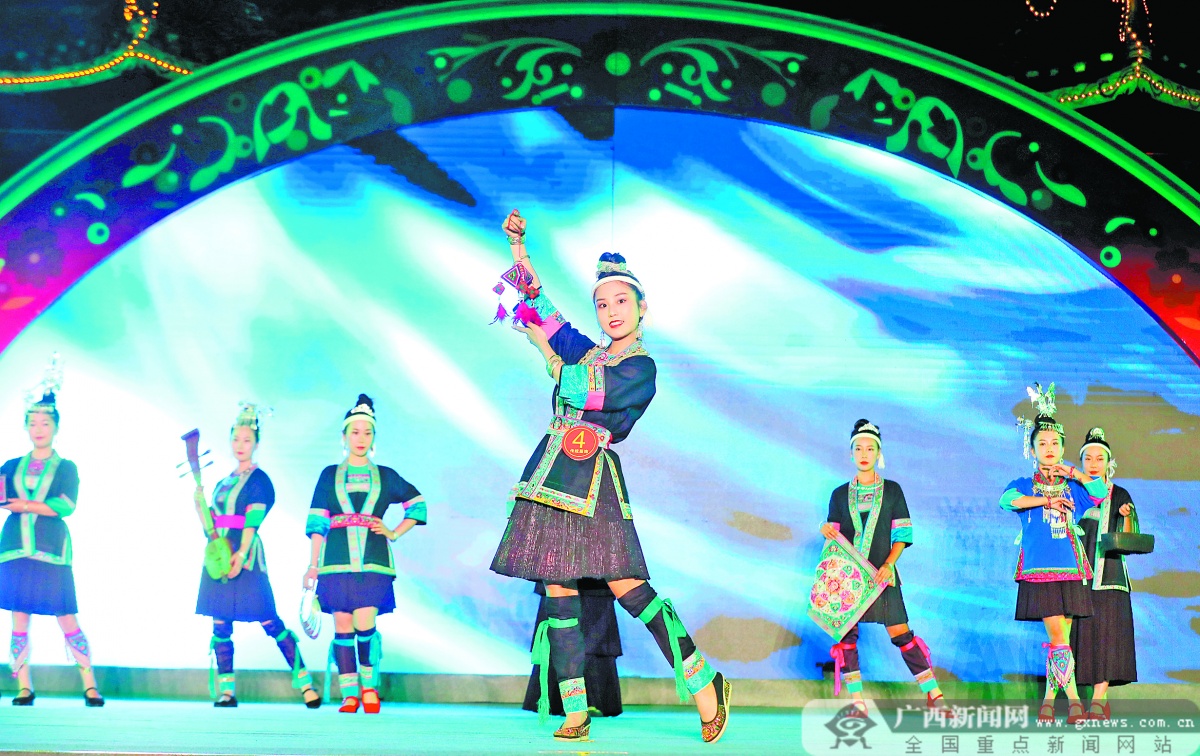 6月10日,三江侗族自治县举办第二届侗族服饰大赛,模特们身着当地绣娘精心设计的侗族服饰登台走秀,尽展侗乡服饰文化魅力,喜迎文化和自然遗产日到来。龚普康 吴练勋 摄