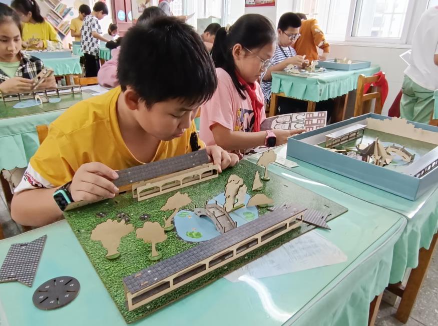 学生们正在搭建园林模型。柳州市育才路小学供图