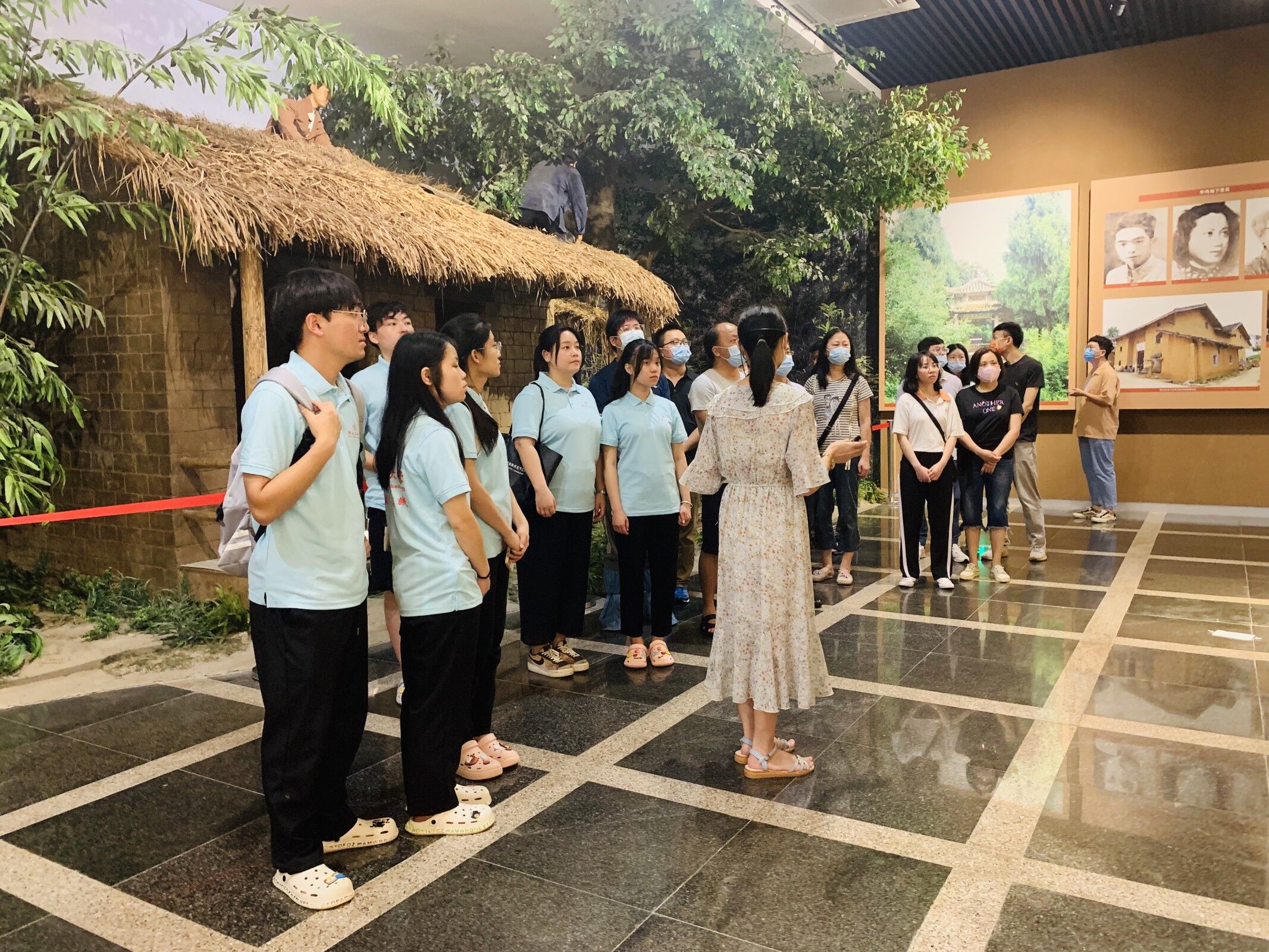 在博物馆讲解员的带领下,团队成员参观学习博物馆历史