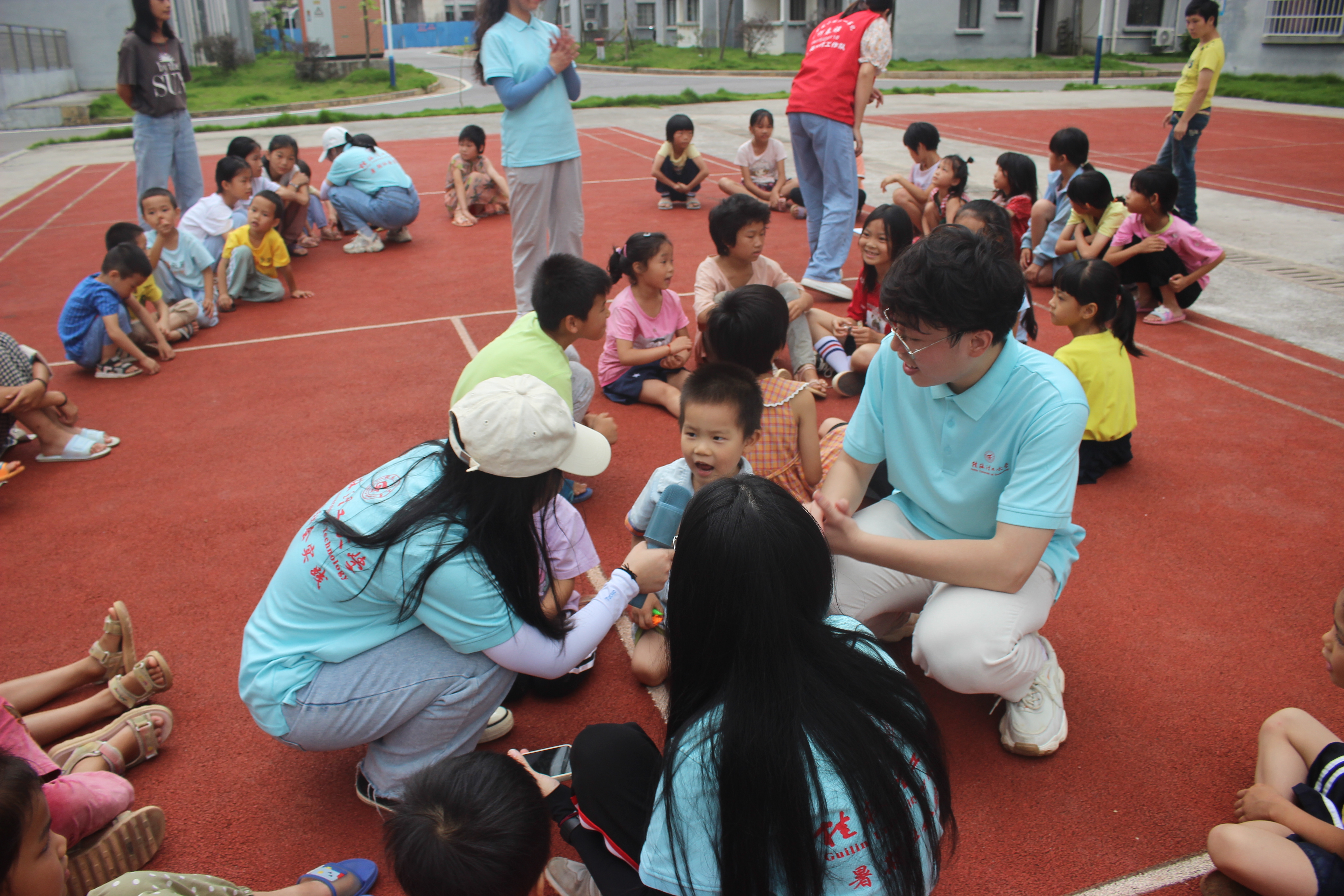 7月4日,实践团队前往钟山县公安镇中心小学开展主题教育活动,一是带领小学生了解桂林理工大学学习环境和趣事,激发他们的学习动力;二是为小学生分享有趣的数学小故事以及展示科学小实验,引导他们以兴趣助力学习、在学习中寻找兴趣。