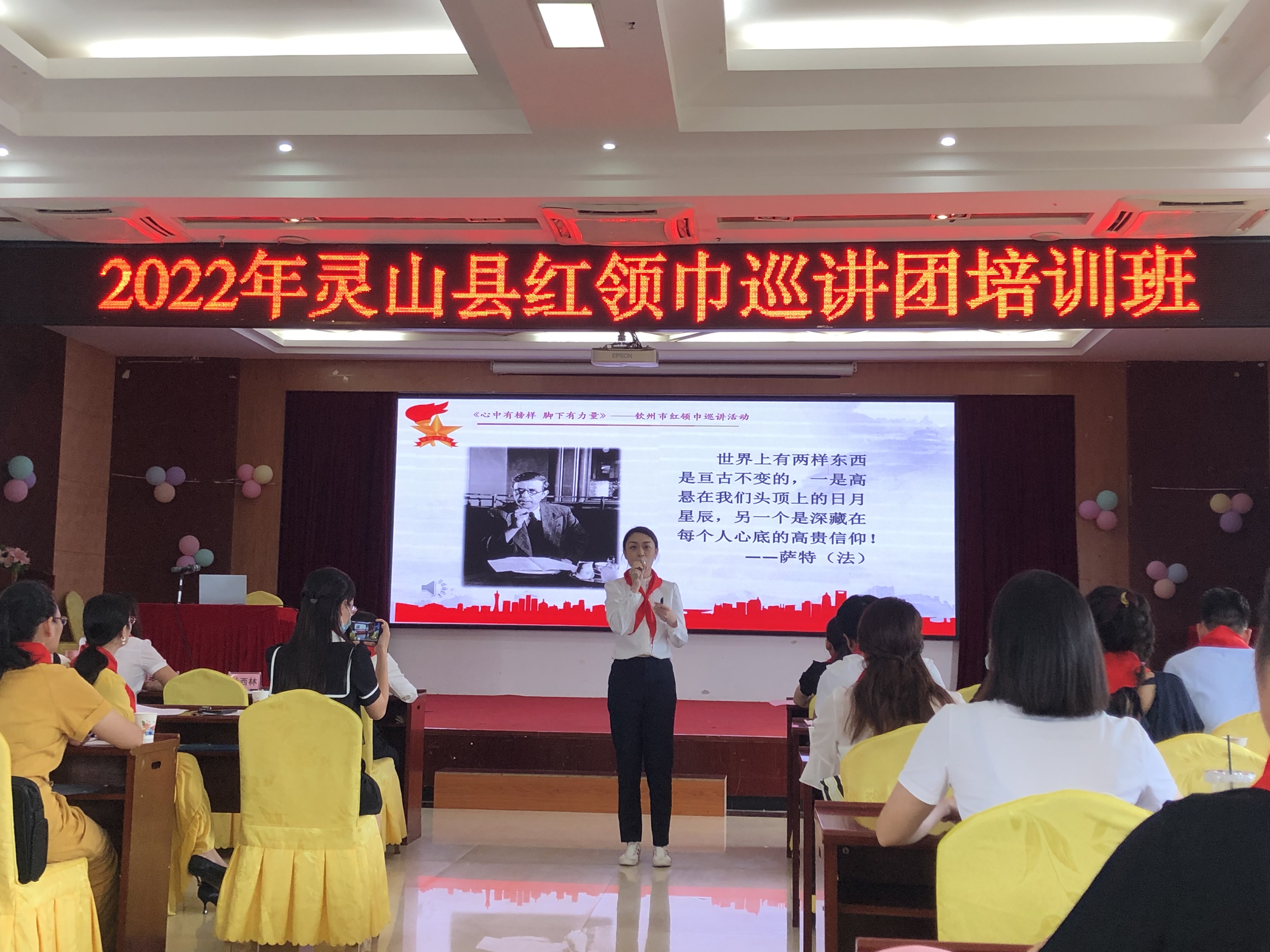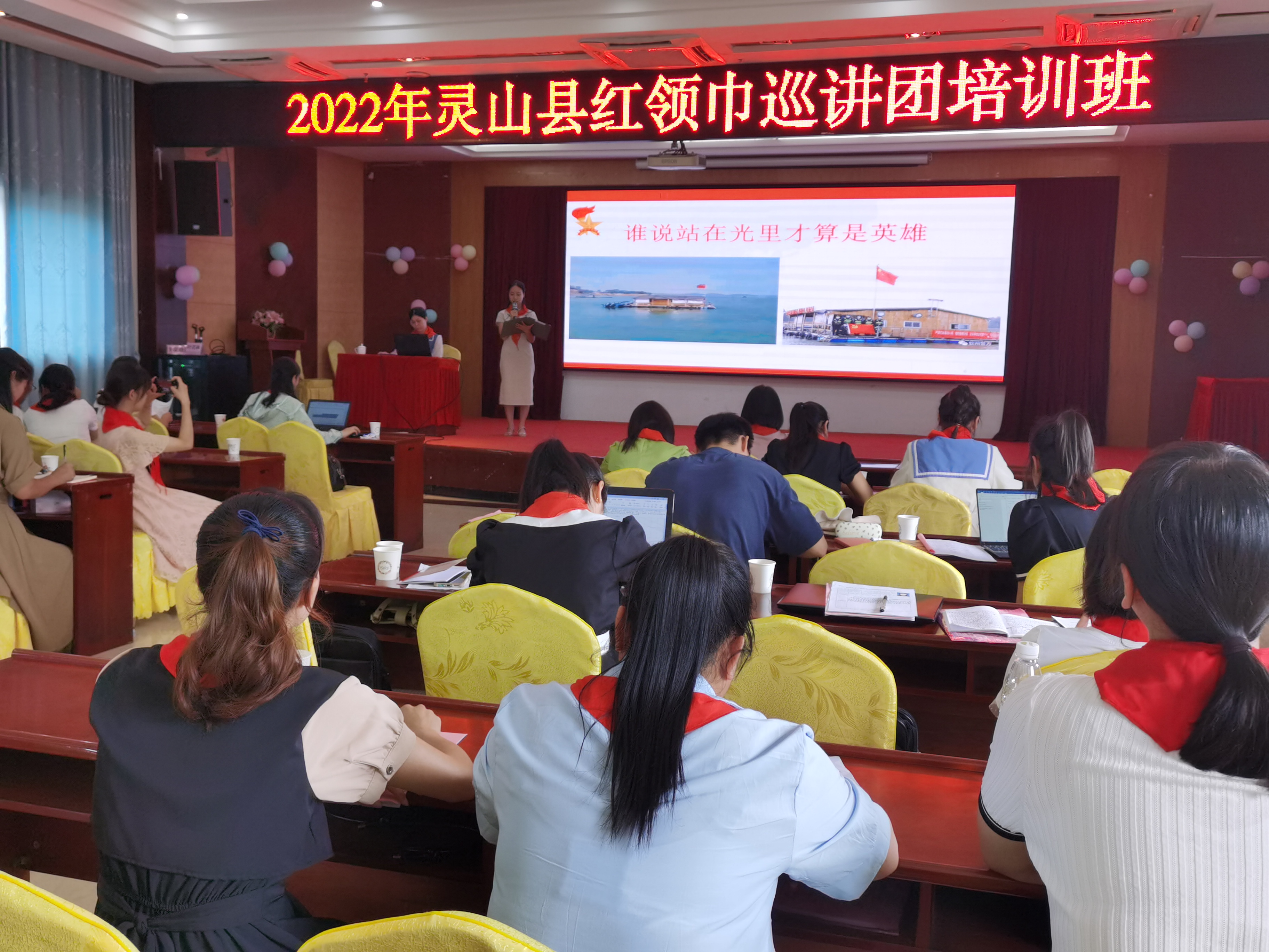 为深入学习贯彻习近平新时代中国特色社会主义思想,提升少先队辅导员讲好“儿童化”政治的能力,7月5日-6日,县教育局、团县委、县少工委联合举办灵山县红领巾巡讲团培训班,41名红领巾巡讲团成员参训。