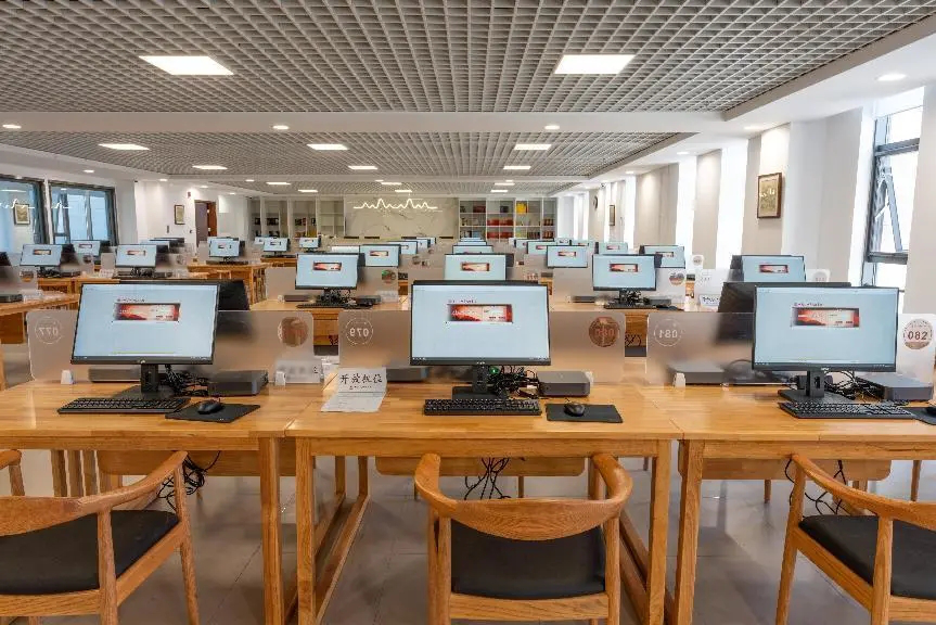 新馆六层,总面积约1000平方米的档案查阅区窗明几净,114个查档机位排列整齐。