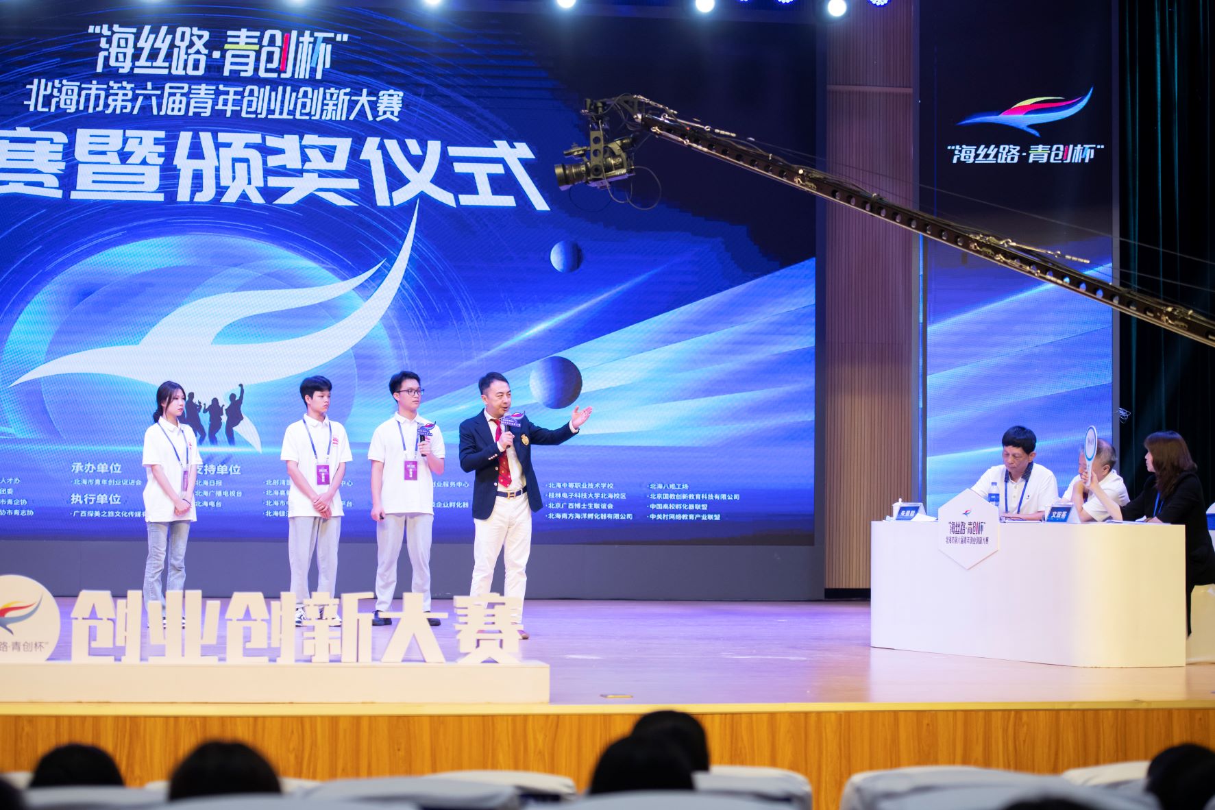 2022年7月10日,由中共北海市委人才办、共青团北海市委员会、北海市工信局、北海市科技局、北海市人社局、北海工业园区管委会、北海高新区管委会、北海海洋产业园区管委会等部门联合主办的“海丝路·青创杯”北海市第六届青年创业创新大赛,经过为期6个多月的赛期,决赛最终在北海市落下精彩帷幕。共青团广西区委副书记荣丽伟出席并致辞,北海市委常委沈铁铮出席并讲话,北海市人大常委会副主任蒋兆娟,北海市政协副主席黄忠东,北海市人大常委会原副主任、市青年创业促进会会长罗恩平出席了活动。