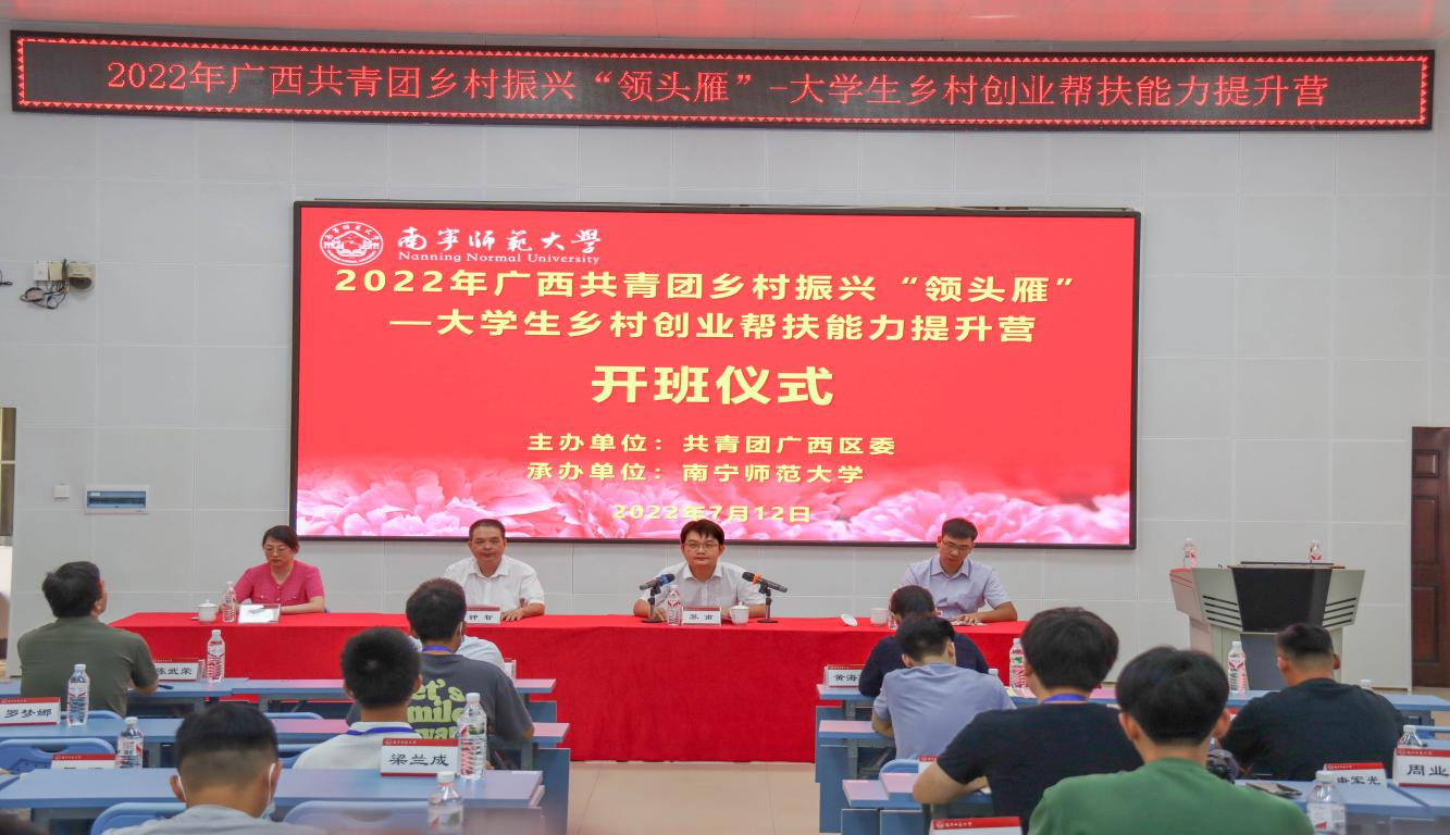 7月12至15日,由共青团广西区委主办、南宁师范大学继续教育学院承办的2022年广西共青团乡村振兴“领头雁”暨大学生乡村创业帮扶能力提升营(第一期)在南宁成功举办。