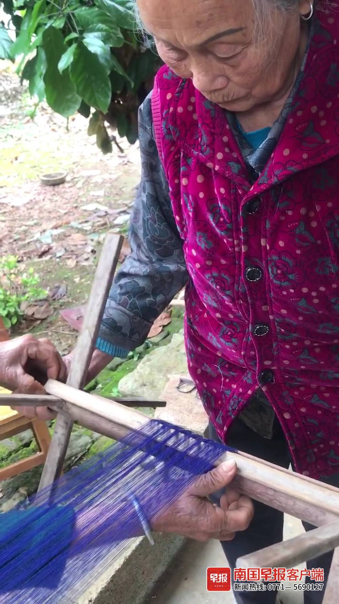 ▲李女士外婆在织蓝腰带。视频截图