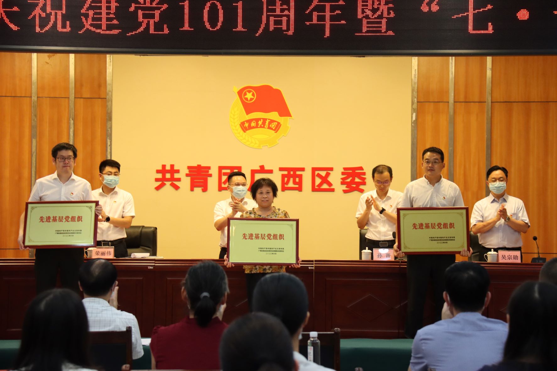 7月15日下午,共青团广西区委召开庆祝建党101周年暨“七·一”表彰大会,表彰获得2021—2022年度“两优一先”的集体和个人,激励广大党员干部和基层党组织充分发挥先锋模范和战斗堡垒作用。共青团广西区委书记蒙启鹏出席会议,共青团广西区委副书记、机关党委书记孙晋主持会议。