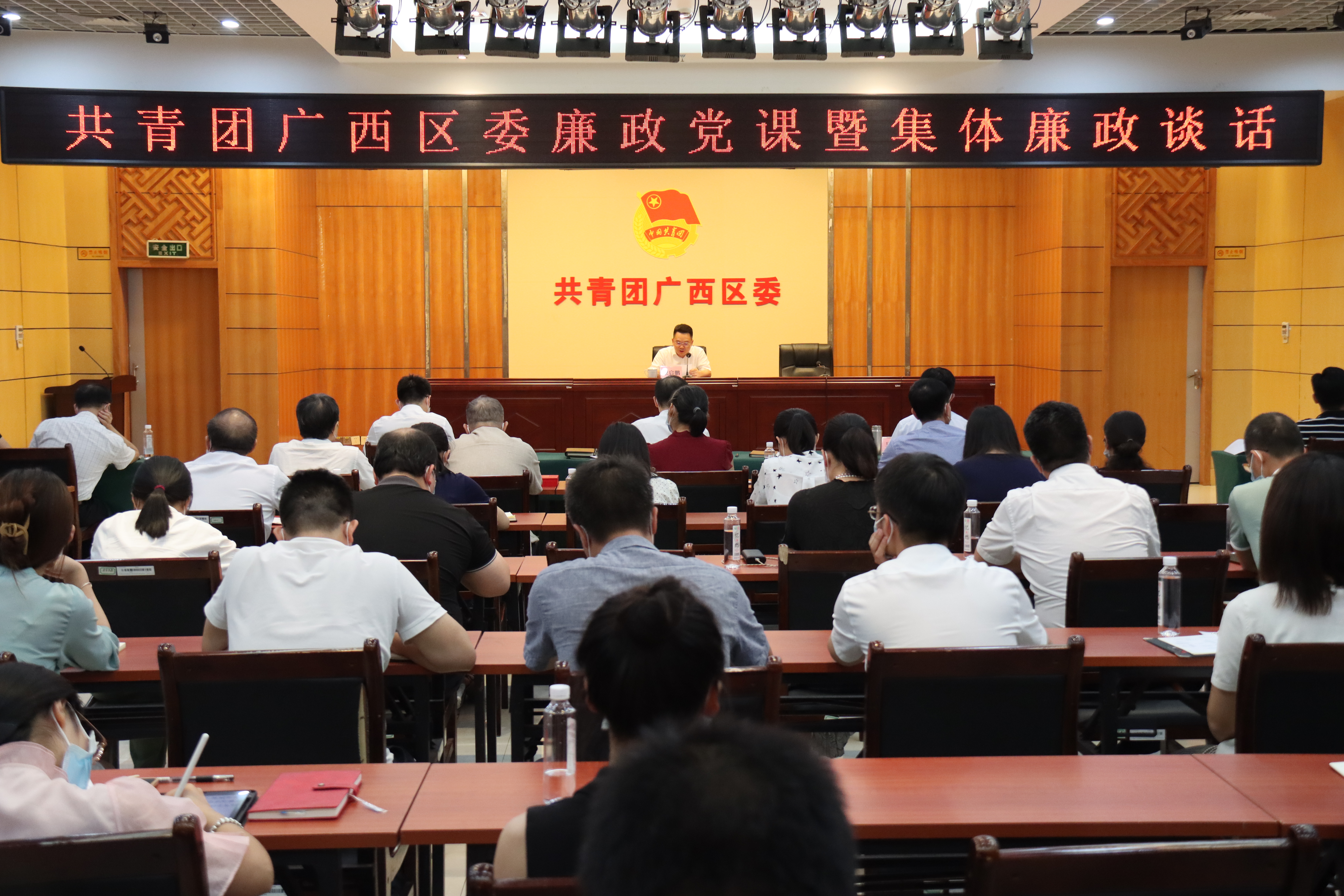 为深入学习贯彻习近平总书记关于党的自我革命的战略思想,教育引导广大党员干部进一步强化廉洁从政意识,提高拒腐防变能力,大力推进清廉机关、清廉家庭建设,7月15日下午,共青团广西区委组织开展廉政党课暨集体廉政谈话会议。共青团广西区委书记蒙启鹏为机关和直属单位党员干部讲授廉政党课,并进行集体廉政谈话。