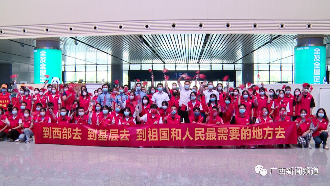 从7月20日开始,2022年广西大学生志愿服务西部计划新疆、西藏等专项的810名志愿者分批从南宁、桂林等地出发,奔赴西部基层开展1到3年的志愿服务。