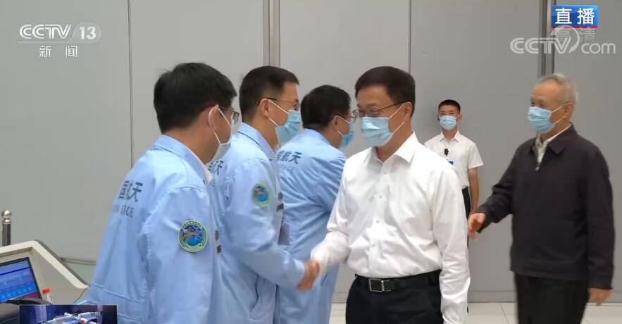 中共中央政治局常委、国务院副总理韩正在北京航天飞行控制中心向全体参研参试人员表示热烈祝贺和诚挚慰问。
