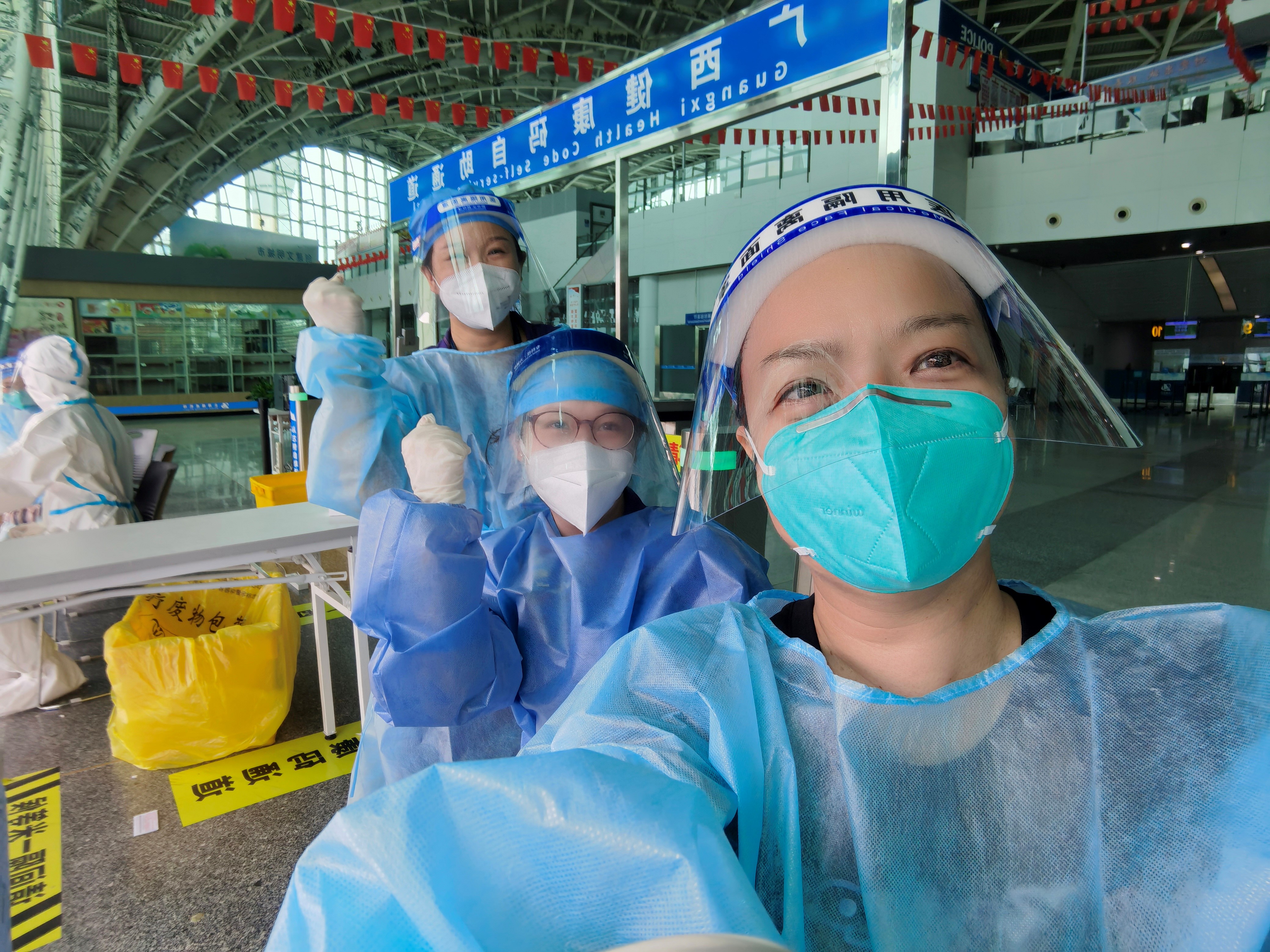疫情防控工作需要大量的志愿者,也许你今天上午出门做了志愿者,下午因为各种原因,就有可能被告知黄码,被限制流动。“所以趁着绿码,赶紧能帮多少是多少”。誓言无声,行动是最好的口号。综合团支部闻令而动,全副武装的“大白”们在候机楼前帮助旅客登记、协助医务人员给旅客做抗原检测、维护现场秩序、解答旅客各种问题。7月的北海高温高湿,防护服的密不透气,近距离接触旅客的潜在风险和困难,没有让年轻的志愿者们退缩。汗水流下来,身体湿了又干,干了又湿,“该换岗了”,“没事,没事”“没问题”“我可以的”。