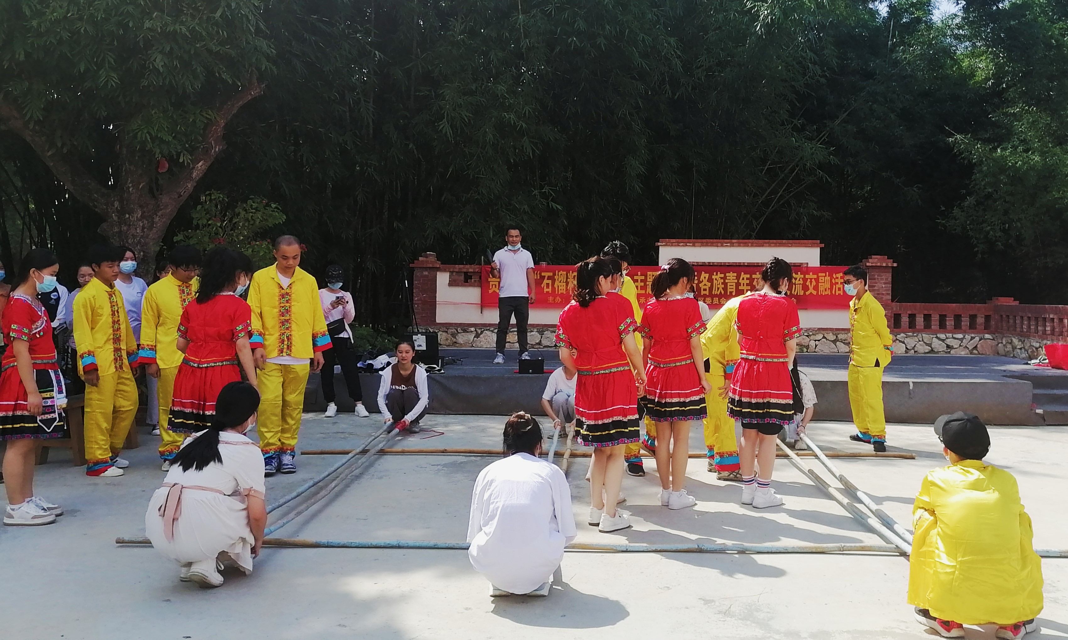参观结束后,伴随着充满活力的民族舞曲,各族青年学生身着民族服装一同跳起竹竿舞,体验少数民族特色活动,展现中华民族文化的多样性和各民族文化的互鉴融通。
