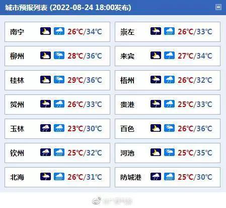 广西各市具体天气预报: