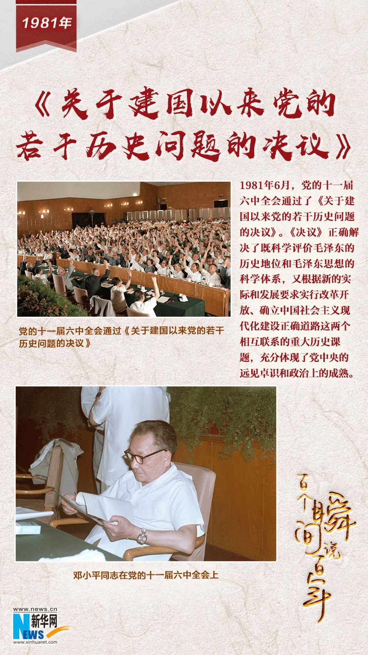 1981年6月,党的十一届六中全会通过了《关于建国以来党的若干历史问题的决议》。