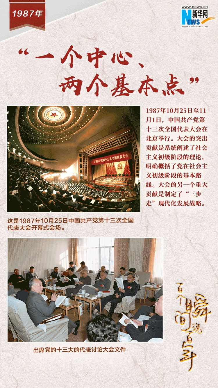 1987年10月25日至11月1日,中国共产党第十三次全国代表大会在北京举行。大会的突出贡献是系统阐述了社会主义初级阶段的理论,明确概括了党在社会主义初级阶段的基本路线。
