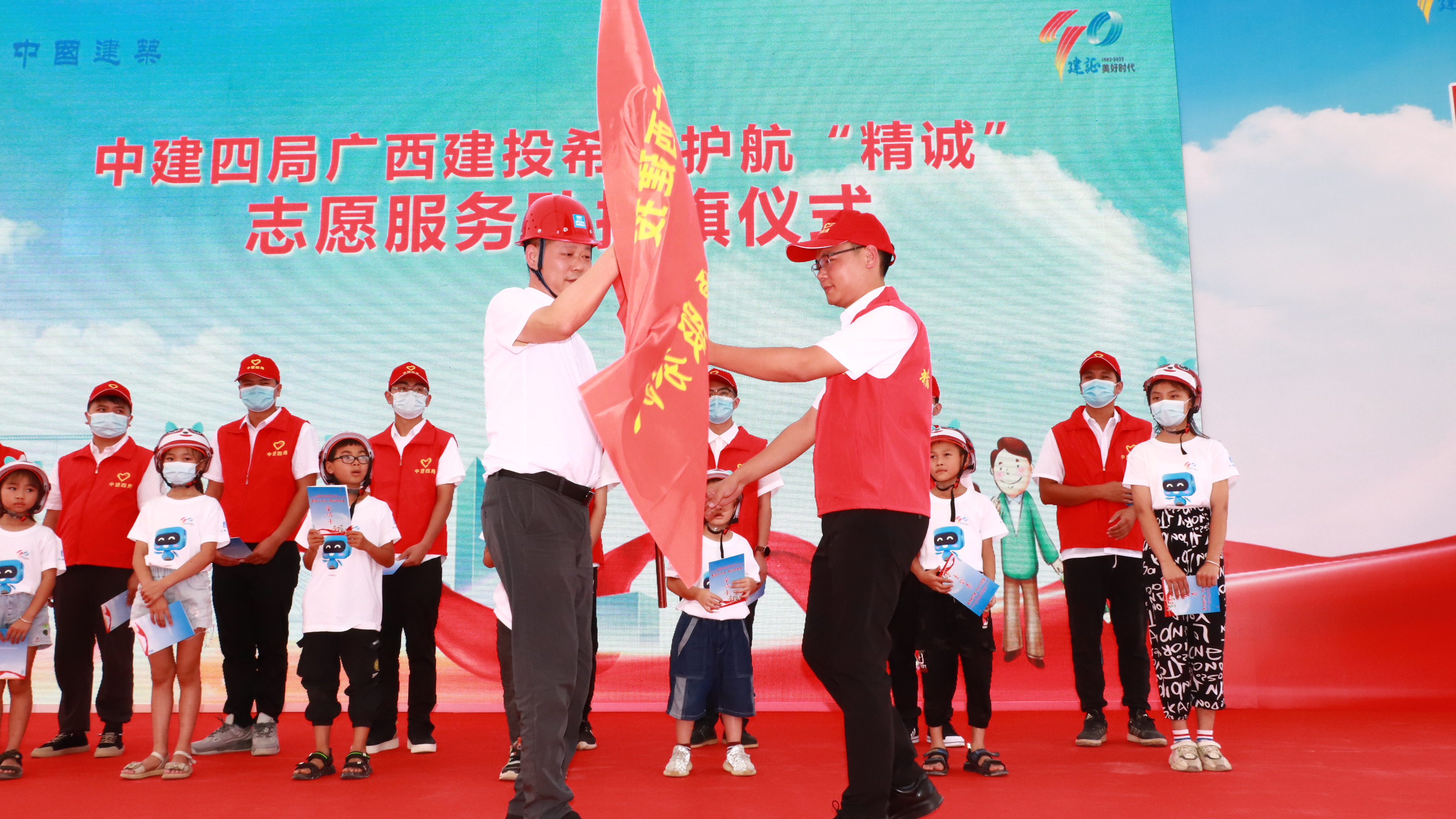 活动中,希望护航“精诚”志愿服务队进行现场授旗,中建四局的青年志愿者与留守的工地管理人员、工友子女进行“一对一”结对帮扶,双方交换联系地址、电话、微信,建立起多渠道全方位联络沟通桥梁,及时掌握孩子的学习、生活、情感动态。联合当地共青团“青空间”,从成长护航、学业护航、青春护航三方面着手,为项目管理人员和工友子女着力构建“知心暖心贴心”的协同育人机制,给予他们情感上的关爱,学习上的关注,生活上的关心。
