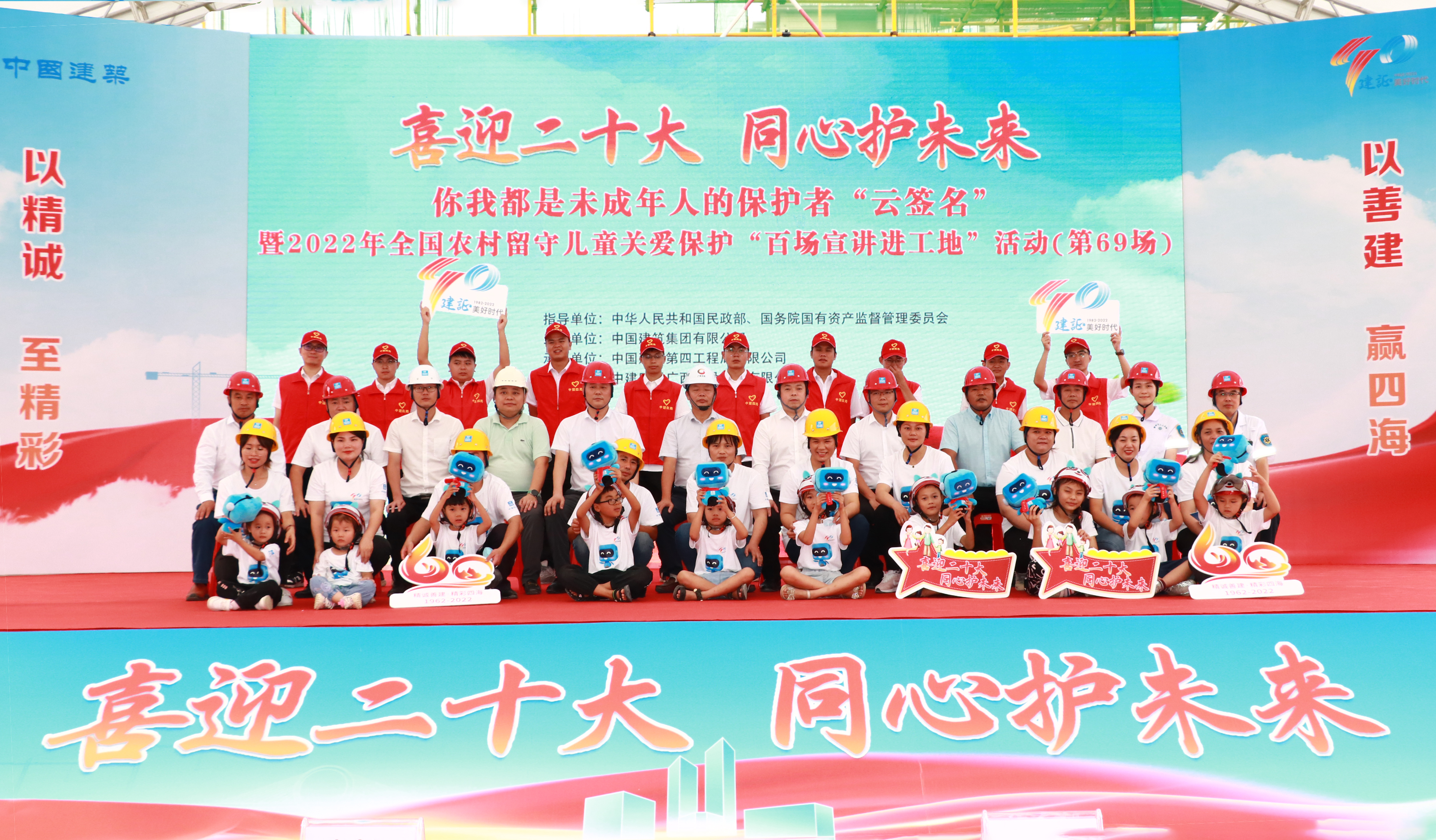 9月24日,由民政部和国务院国资委共同指导,中建集团主办,中建四局承办,中建四局广西建设投资有限公司协办的“喜迎二十大 同心护未来”你我都是未成年人的保护者“云签名”暨2022年全国农村留守儿童关爱保护“百场宣讲进工地”活动(第69场)走进柳州新叶城项目,本次活动采用线上线下相结合方式进行。广西交投地产集团柳州区域公司等单位参加活动。
