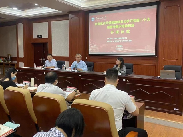 11月14日,共青团广西区直机关工委举办的2022年广西区直机关团组织书记学习党的二十大精神专题示范培训班在广西民族大学开班。52名广西区直机关团组织书记汇聚一堂,自觉用习近平新时代中国特色社会主义思想凝心铸魂,以实干精神和务实作风推动青年工作高质量发展。