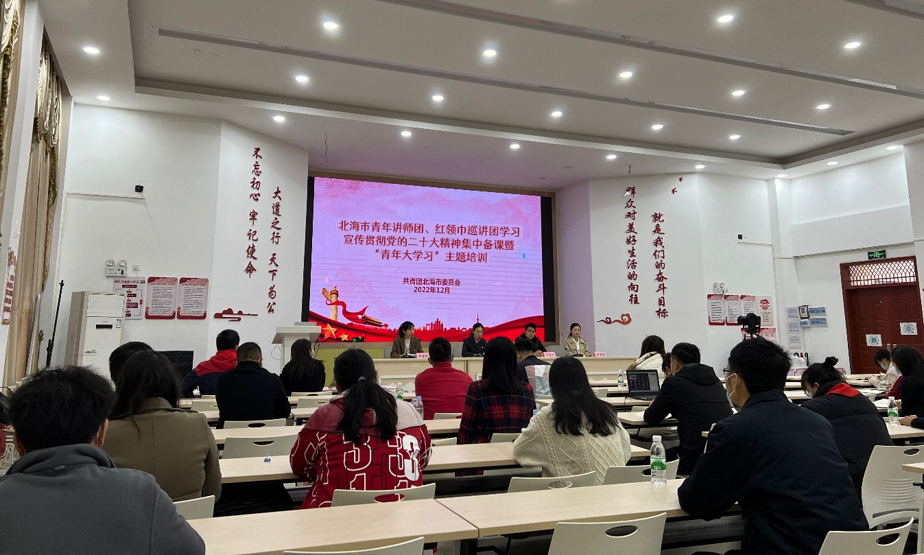 12月1日上午,共青团北海市委在北部湾社区会议室举办北海市青年讲师团、红领巾巡讲团学习宣传贯彻党的二十大精神集中备课暨“青年大学习”主题培训,活动现场互动频频,气氛活跃。