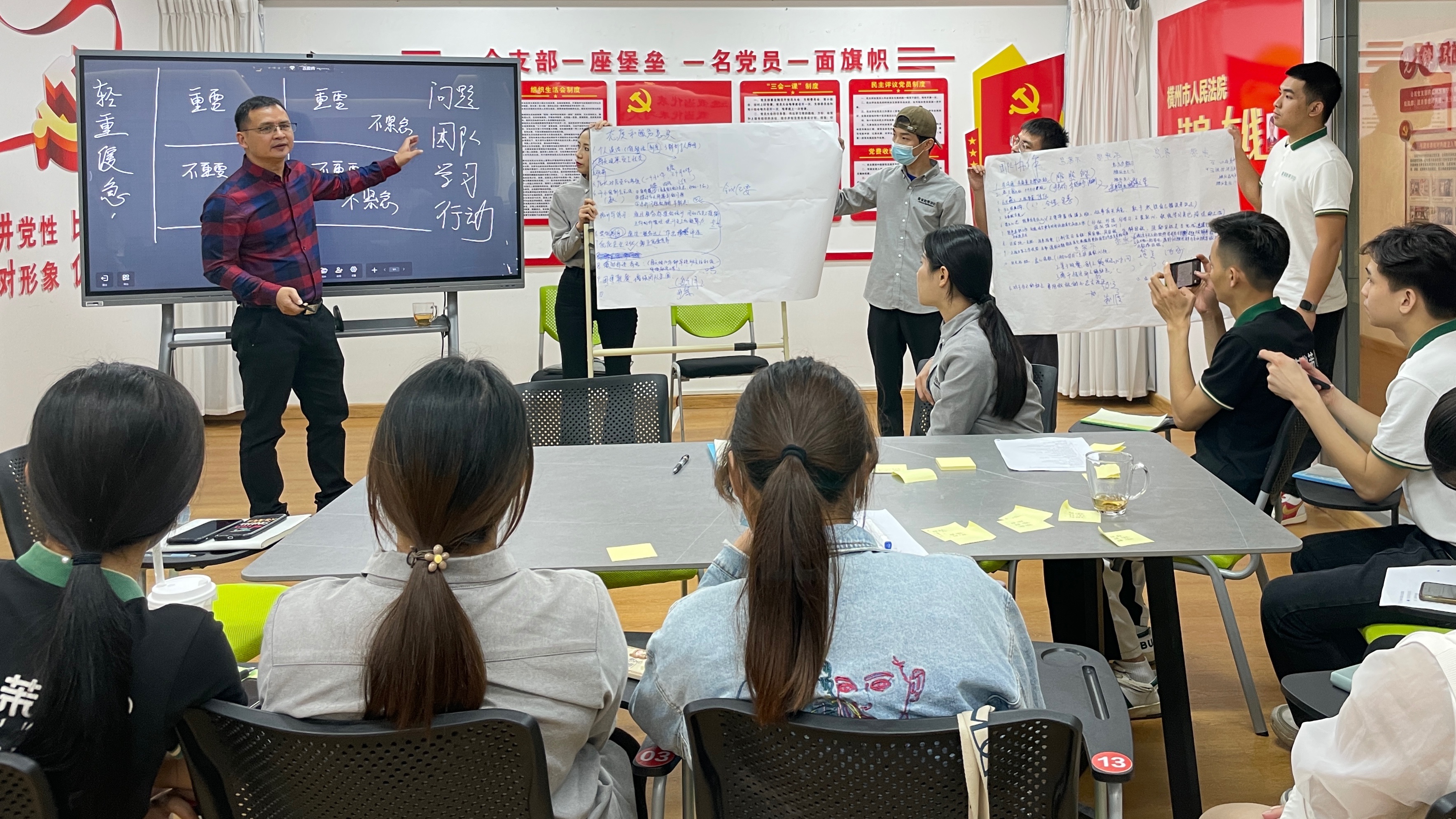 项目团队从前期“青创企业”寻找出的问题,引导“青创企业”员工以主人翁的角度进行思考,通过重要紧急矩阵将问题进行划分,并对“员工工作态度和服务意识不足”开展头脑风暴。在项目团队促进师的引导下,企业员工对行动学习热情不断提升,企业员工由被动学习转为主动学习,大家通过群策群力,统一了思想,形成了共识并制定了行动学习方案。