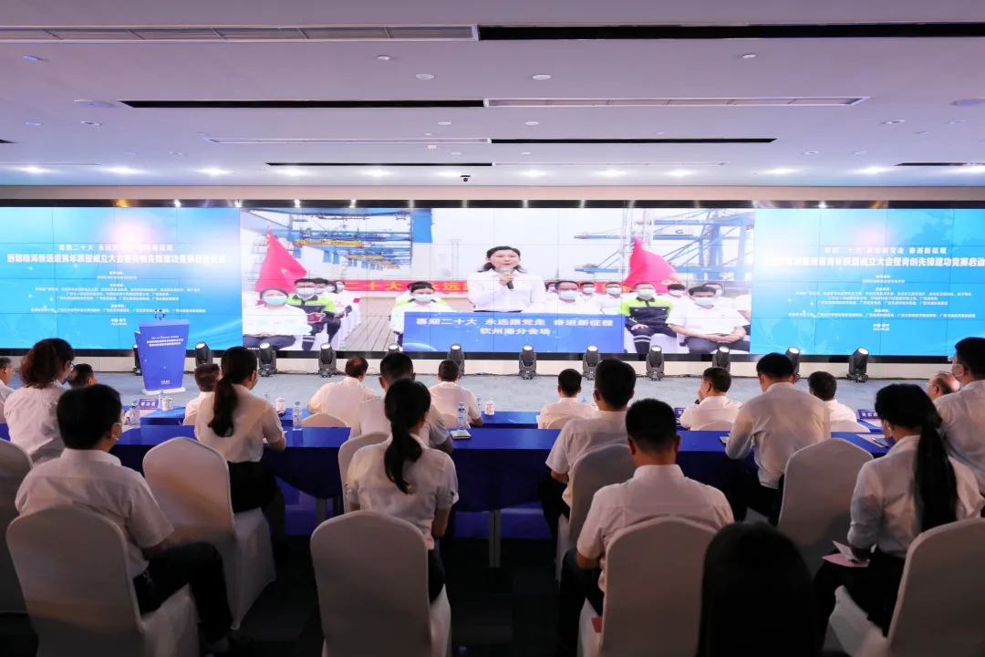 2022年4月28日在北部湾航运中心共同举办西部陆海新通道青年联盟成立大会暨青创先锋建功竞赛启动仪式