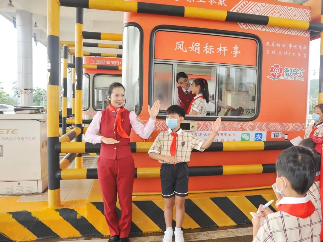 2022年8月22日上午,广西少工委组织南宁市锦华小学少先队员代表到南宁东收费站开展“喜迎二十大,争做好队员”主题寻访活动