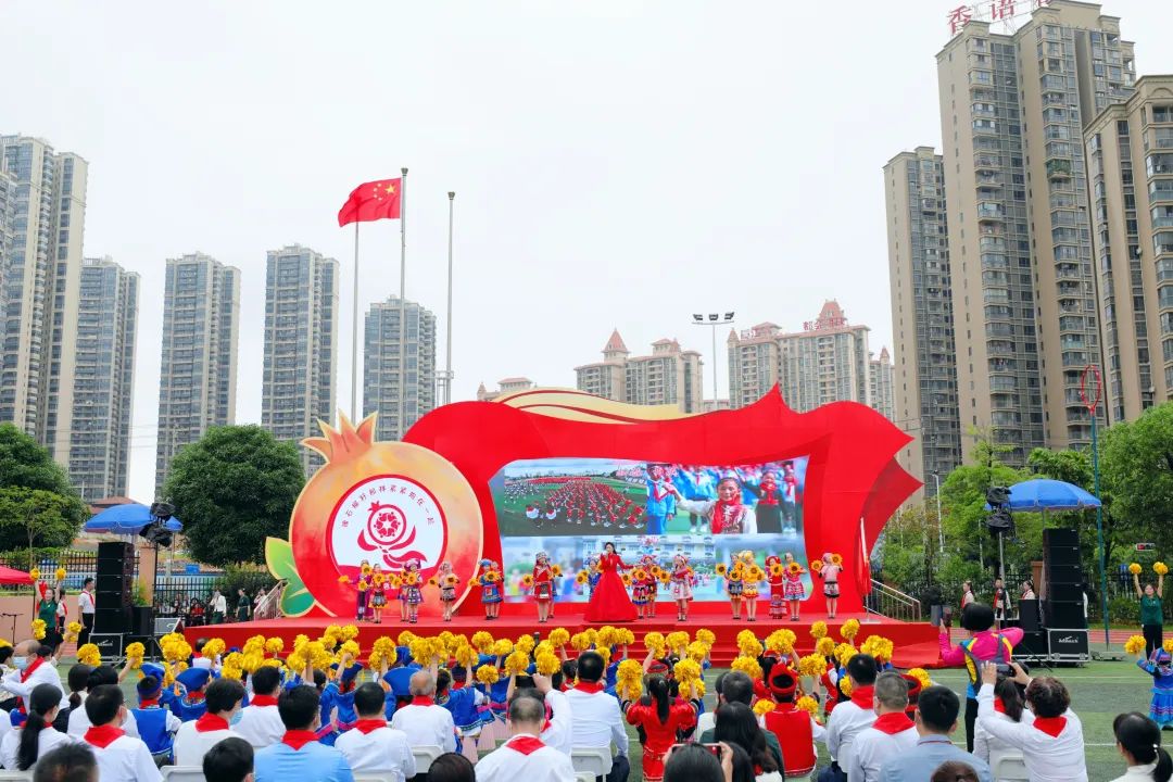 2022年5月25日在南宁民主路小学举办石榴籽一家亲 ——广西、新疆、西藏三地少先队主题云队会,三地队员一起高唱《爱我中华》,以歌寄情