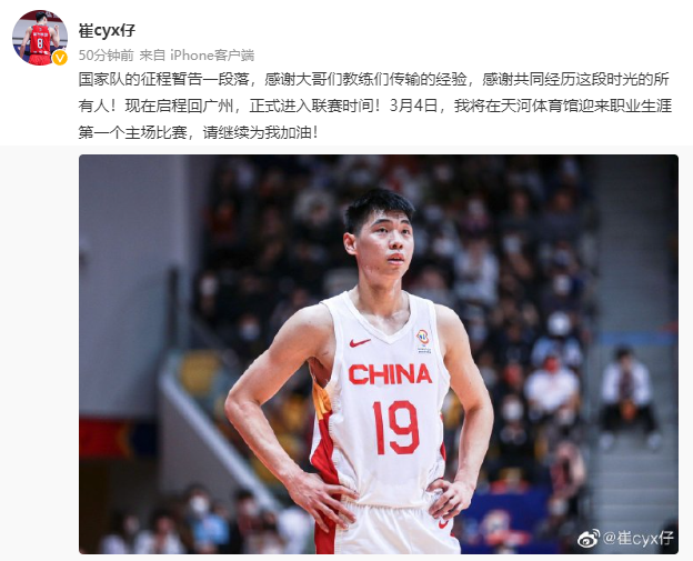 此场比赛中,来自南宁的中国男篮队员崔永熙出场25分钟,投篮6中4,其中三分1中0,得到8分4篮板2助攻。