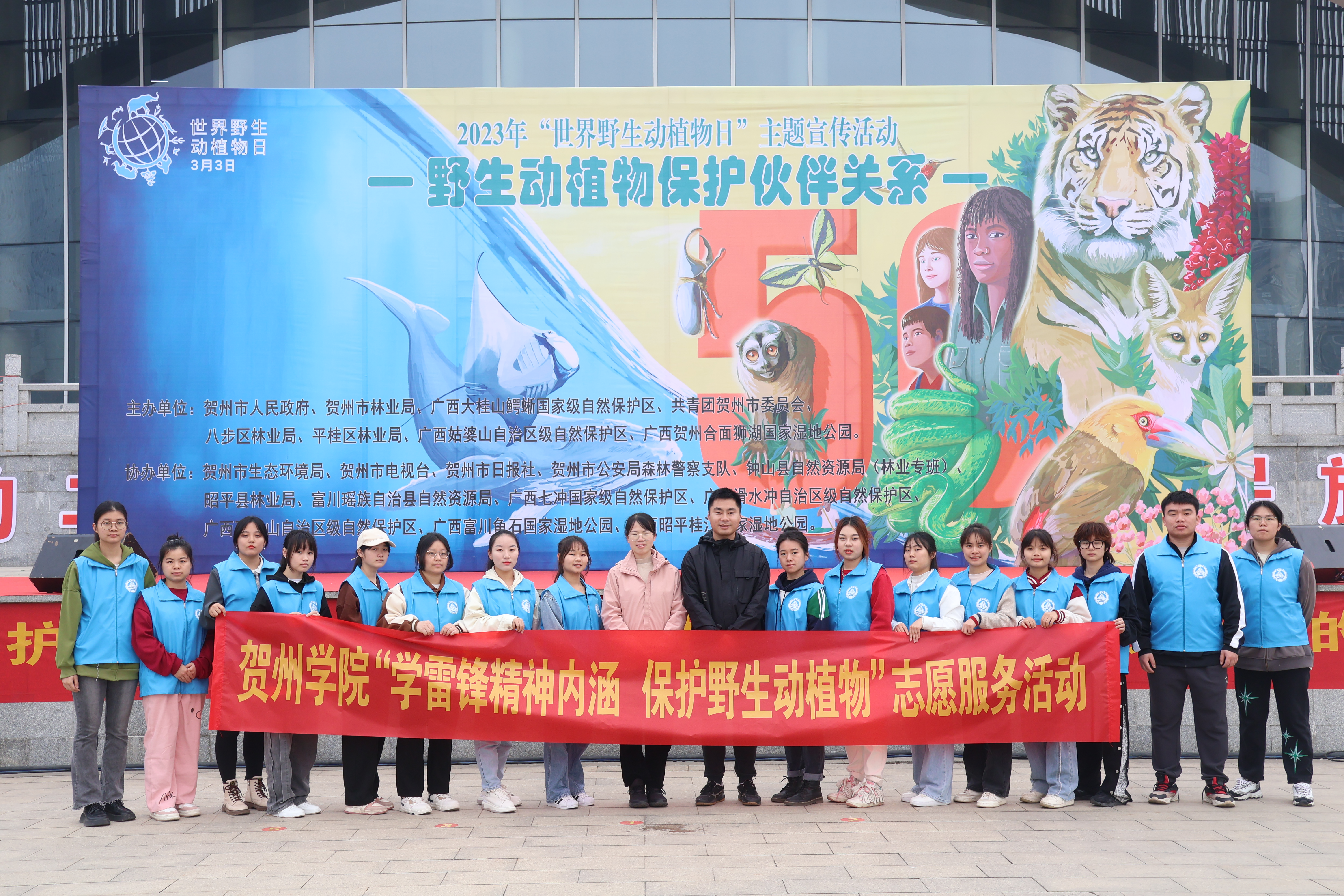 3月3日,在第10个“世界野生动植物日”之际,贺州学院联合贺州市林业局等开展以“学雷锋精神内涵,保护野生动植物”为主题的志愿服务活动。在贺州市爱莲湖文化中心广场,志愿者们布置现场、发放“国宝”鳄蜥宣传手册等,帮助群众提升保护野生动物意识。走访贺州市大桂山鳄蜥国家级自然保护区科普研学基地,近距离接触和感受鳄蜥,切实了解鳄蜥的栖息环境与生活习性,为传播“人与自然是生命共同体”理念,保护野生动植物奠定更坚实的基础。