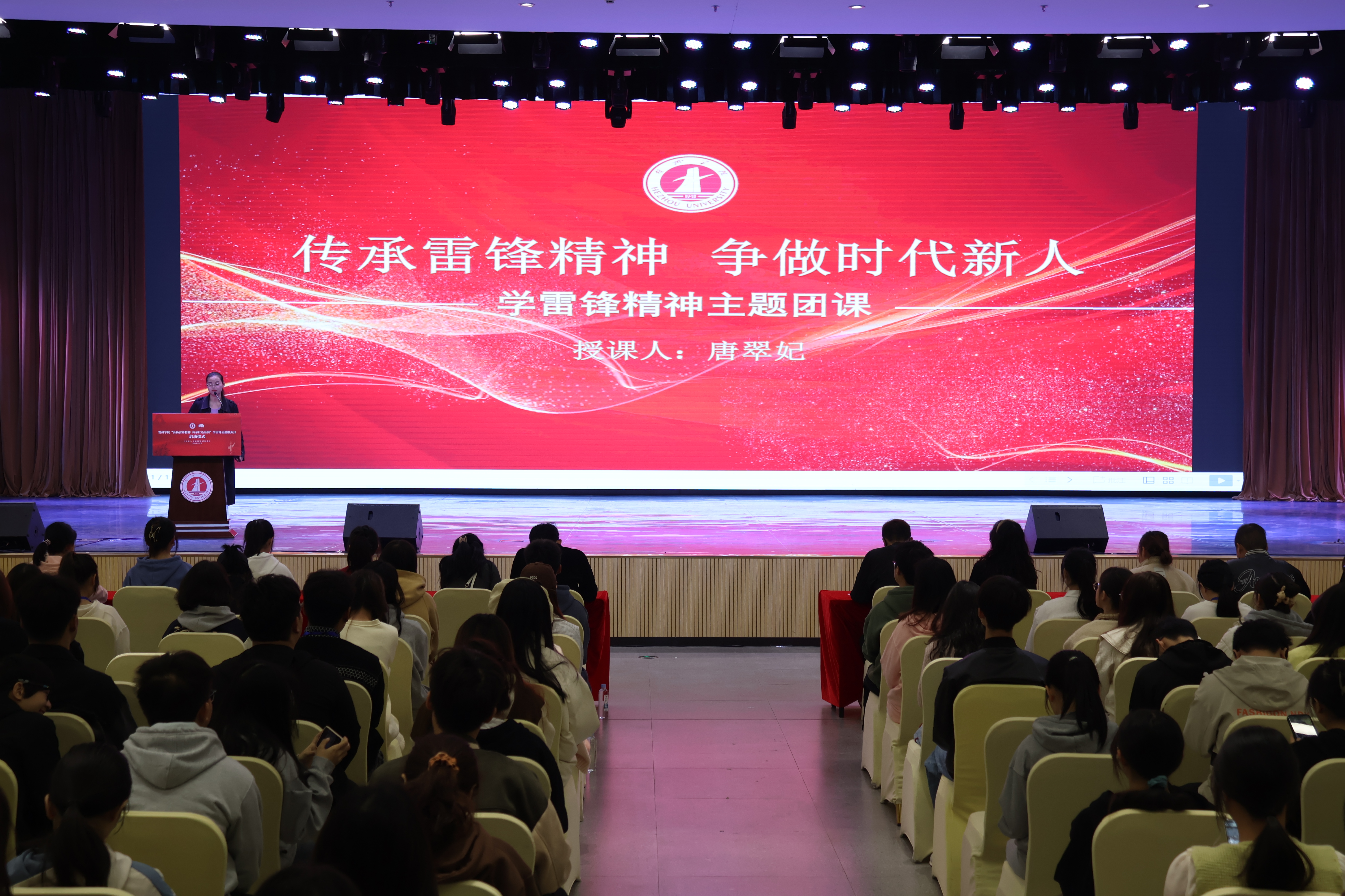 3月5日上午,贺州学院在地方民族研究中心报告厅举办贺州学院“弘扬雷锋精神,传承红色基因”学雷锋志愿服务月启动仪式,着重部署学雷锋志愿服务月系列重要活动;上学雷锋精神主题团课,回顾雷锋短暂而精彩的一生,以及一代代领导人对弘扬雷锋精神的重要指示和重要论述,揭示雷锋精神永不过时的真理;培训青年志愿者,提高服务质量,引领贺院青年深刻认识雷锋精神的时代内涵,坚定人民立场,厚植家国情怀;深刻领会雷锋精神的时代价值,做到知行合一,建功新时代;深刻感悟雷锋精神的时代风貌,传播正能量,争做活雷锋。