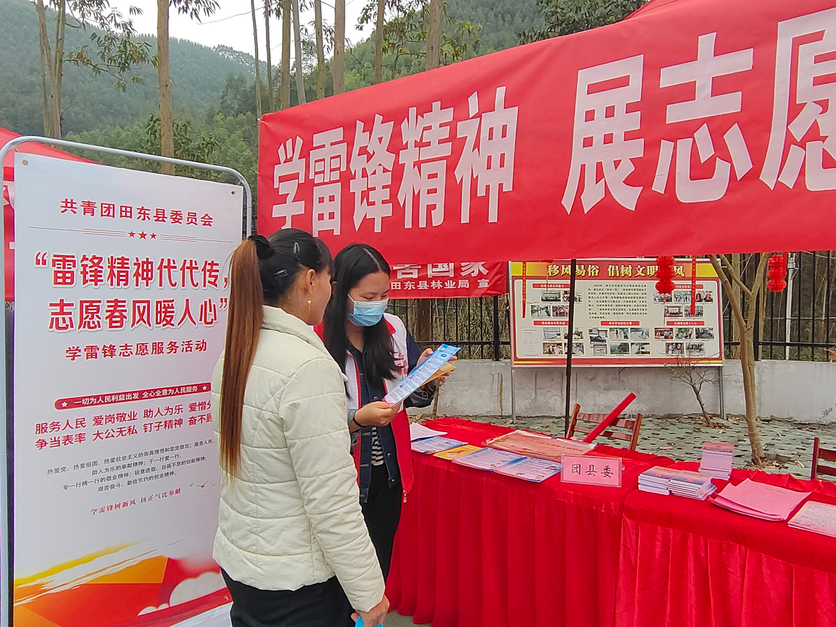 志愿春风润心田,雷锋精神永传承。为深入学习宣传贯彻党的二十大精神,贯彻落实习近平总书记对深入开展学雷锋活动作出的重要指示精神,进一步弘扬“奉献、友爱、互助、进步”的志愿服务精神,近日,团田东县委组织青年志愿者开展“雷锋精神代代传,志愿春风暖人心”学雷锋志愿服务系列活动。