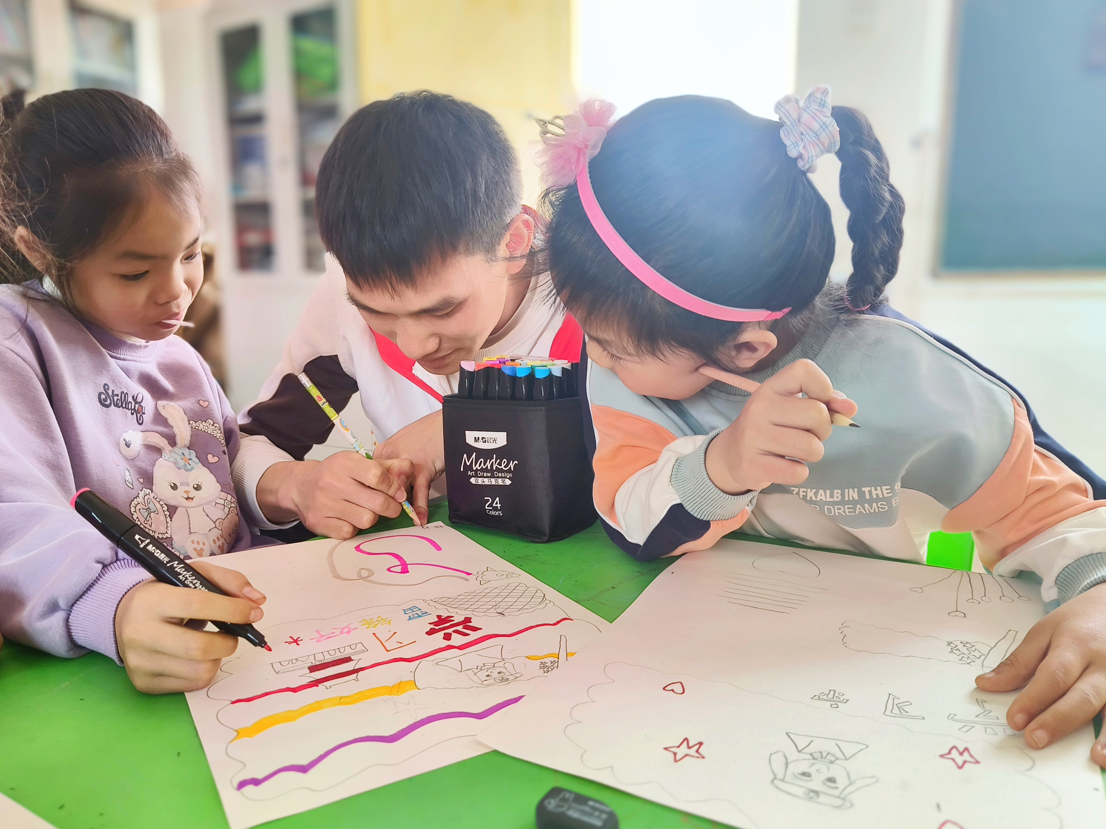 春风送暖,爱心送情。在祥周镇布兵村,志愿者向小朋友们宣讲雷锋事迹、品读雷锋故事、共唱《学习雷锋好榜样》,带领他们走进雷锋的世界,感悟雷锋精神。随后,小朋友们还与志愿者一起挥动手中五颜六色的画笔,用温情的文字书写、用有力的画笔描绘“我心目中的雷锋”,一幅幅画卷上,凝聚的是孩子们对雷锋精神的崇高敬仰。志愿者在与小朋友们的交流互动过程中,鼓励他们认真学习勤俭节约、乐于助人的雷锋精神,从小事做起,从点滴做起,争做新时代雷锋精神的传承人。