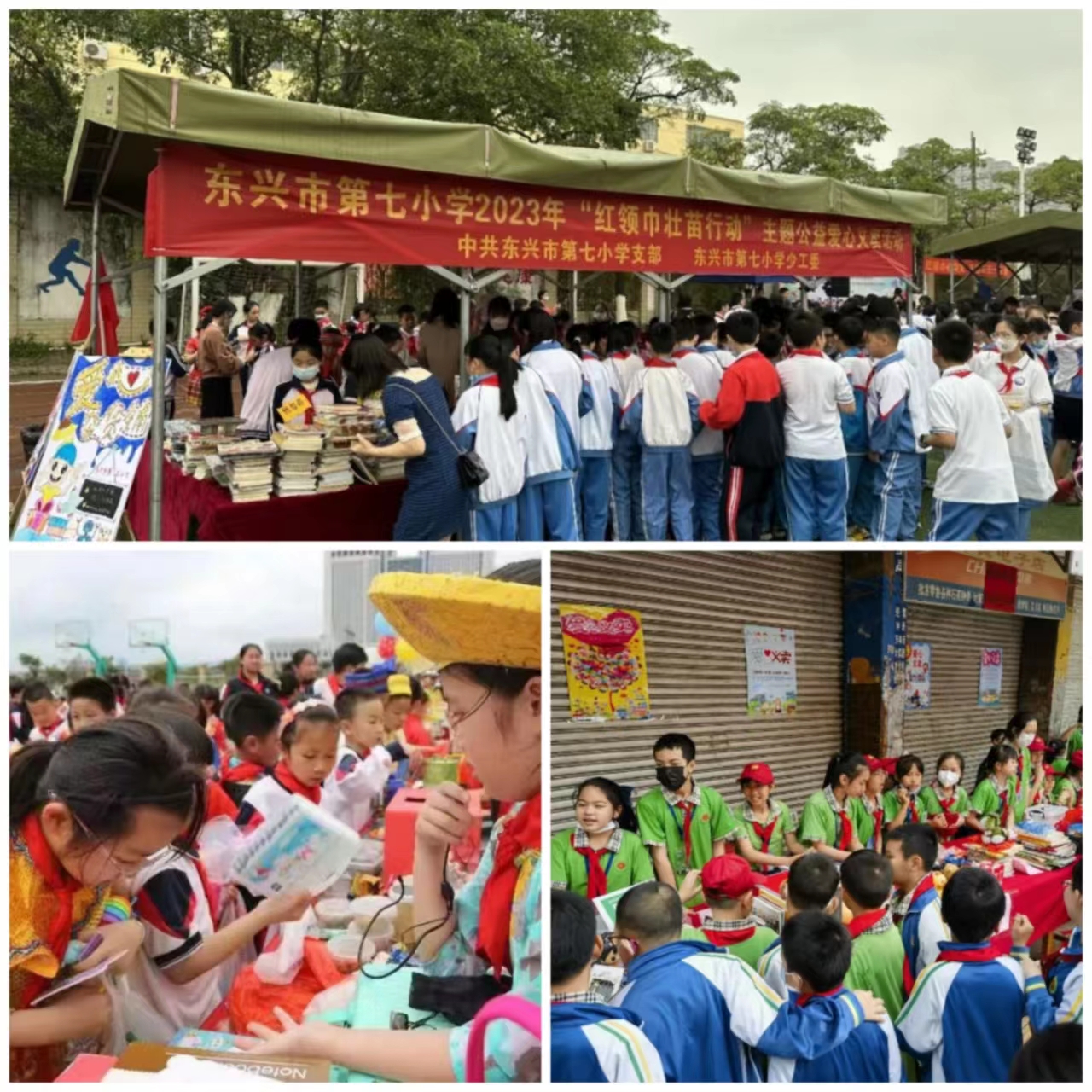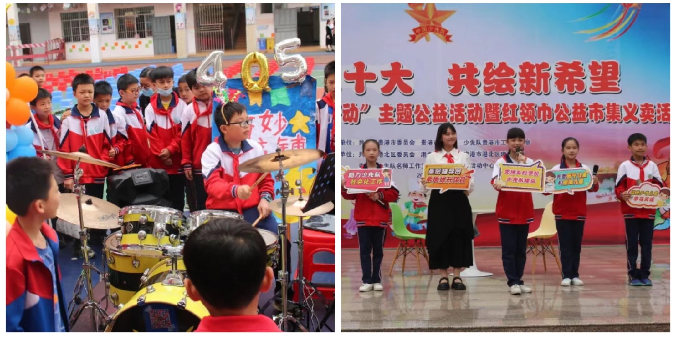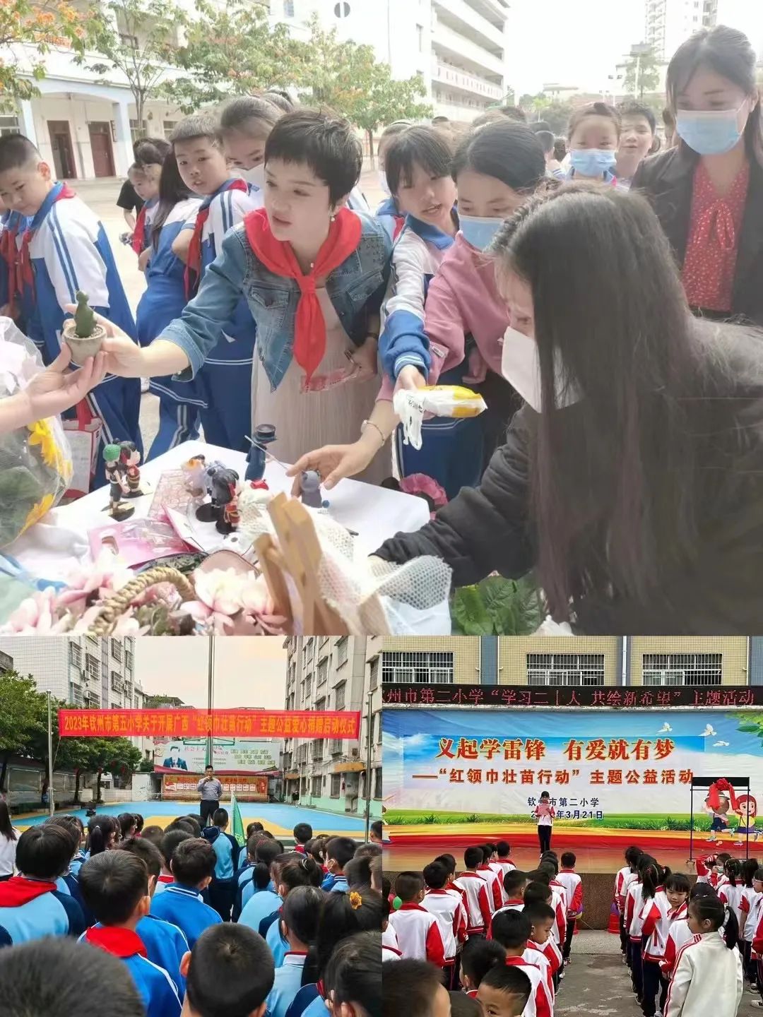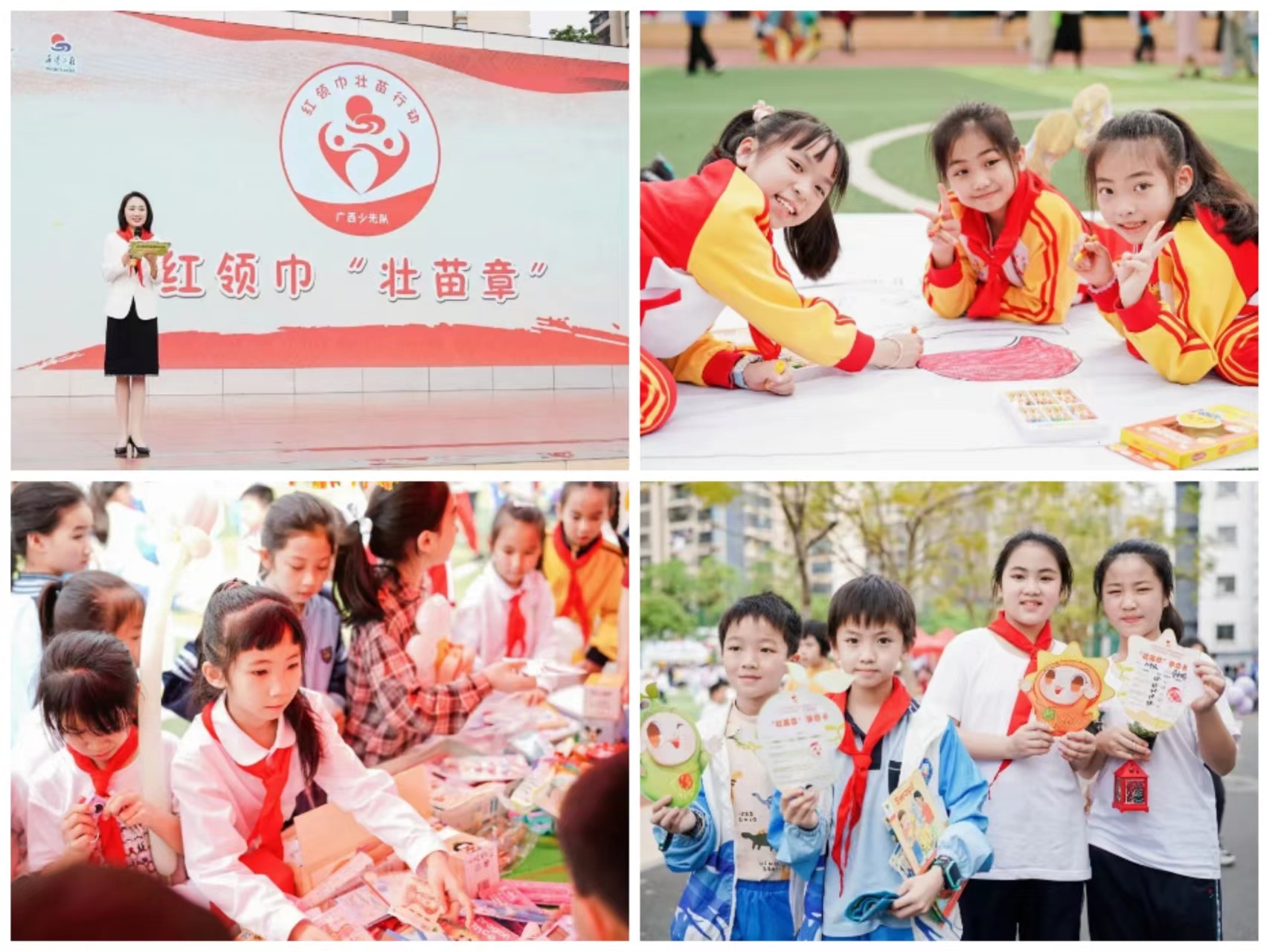 防城港市各县(市、区)一同开展了广西“ 红领巾壮苗行动 ”主题公益活动,通过组织少先队员们进行才艺展示、摆摊义卖、爱心捐款等形式,结合“红领巾奖章”争章活动,培养少先队员的爱心和社会责任感。