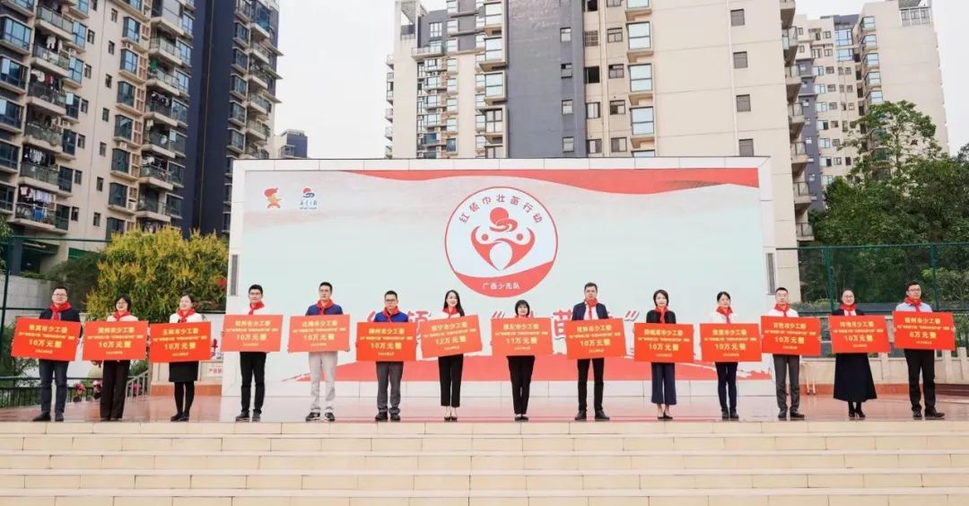 涓涓细流汇成大海,小小善举铸就大爱。当天,全区14个地市少先队组织统一行动,分别在南宁市举行特色主题公益活动,共181所学校、15.2万余名少先队员参与。在主会场,各市少工委代表举牌捐赠139万元,汇聚八桂少先队员爱心,以实际行动为红领巾事业添砖加瓦,为帮助困境儿童、留守儿童,助力乡村教育振兴奉献爱心和力量。