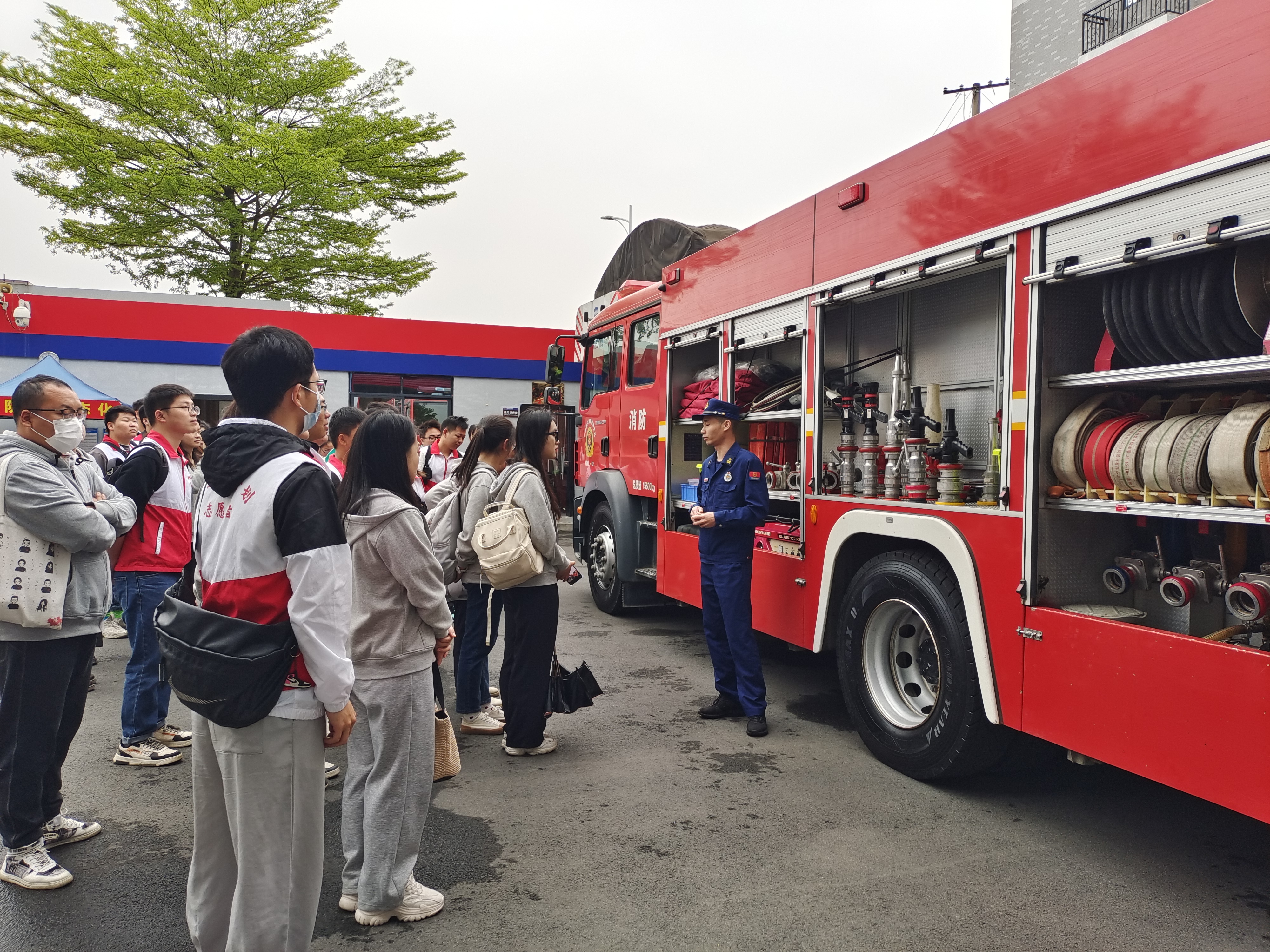活动中,志愿者们走进隆安县消防救援大队蝶城站,近距离学习消防安全知识,“零距离”感受消防文化。隆安县消防支队唐永国助理为志愿者们介绍了消防站现配备的消防车辆以及各型号消防车功能和用途。志愿者还在消防队员的专业指导下进行消防实操联系,部分志愿者穿戴上了战斗服、头盔等装备,学习使用消防水带、切割机、扩张钳等专业消防器材,体验了真实消防员的负担与压力。