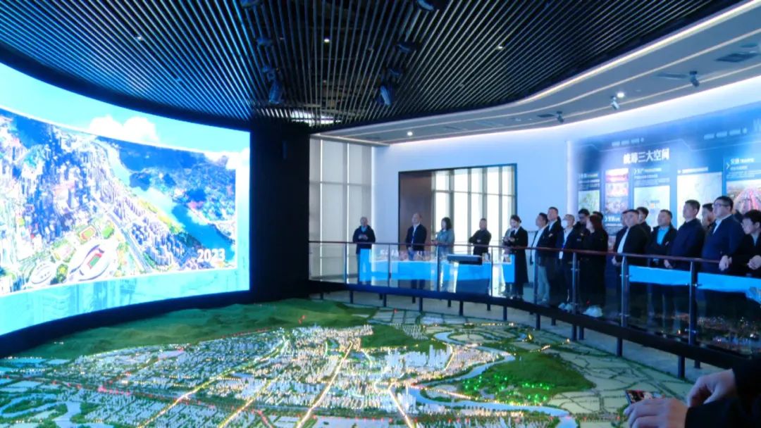 在南宁五象新区规划展示厅里,工作人员向青年企业家们介绍了五象新区的发展历程和发展趋势。据了解,五象新区以自贸试验区南宁片区这个南宁最重要的开放平台为引领,截至2022年底,五象新区累计完成投资约4300亿元,南宁片区自揭牌以来已累计新增企业超4.6万家,外贸进出口累计完成1734亿元。在优化营商环境方面,南宁片区聚焦贸易便利化、投资便利化、产业发展等领域开展探索创新,新增“惠企惠民一站通系统助力优化营商环境”等56项制度创新成果。现场的讲解也让青年企业家们对南宁五象新区以及广西自贸试验区有了更深的认识。