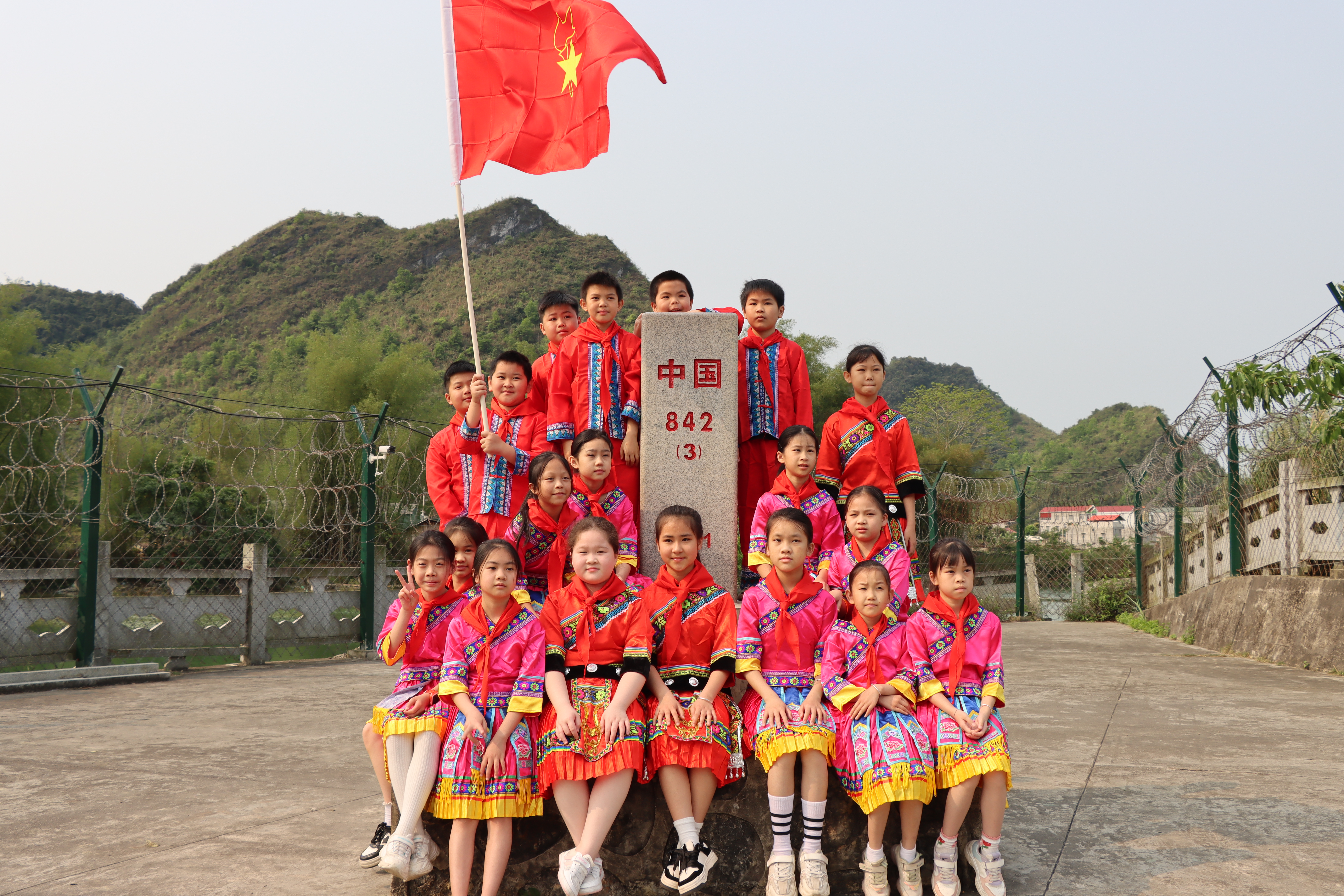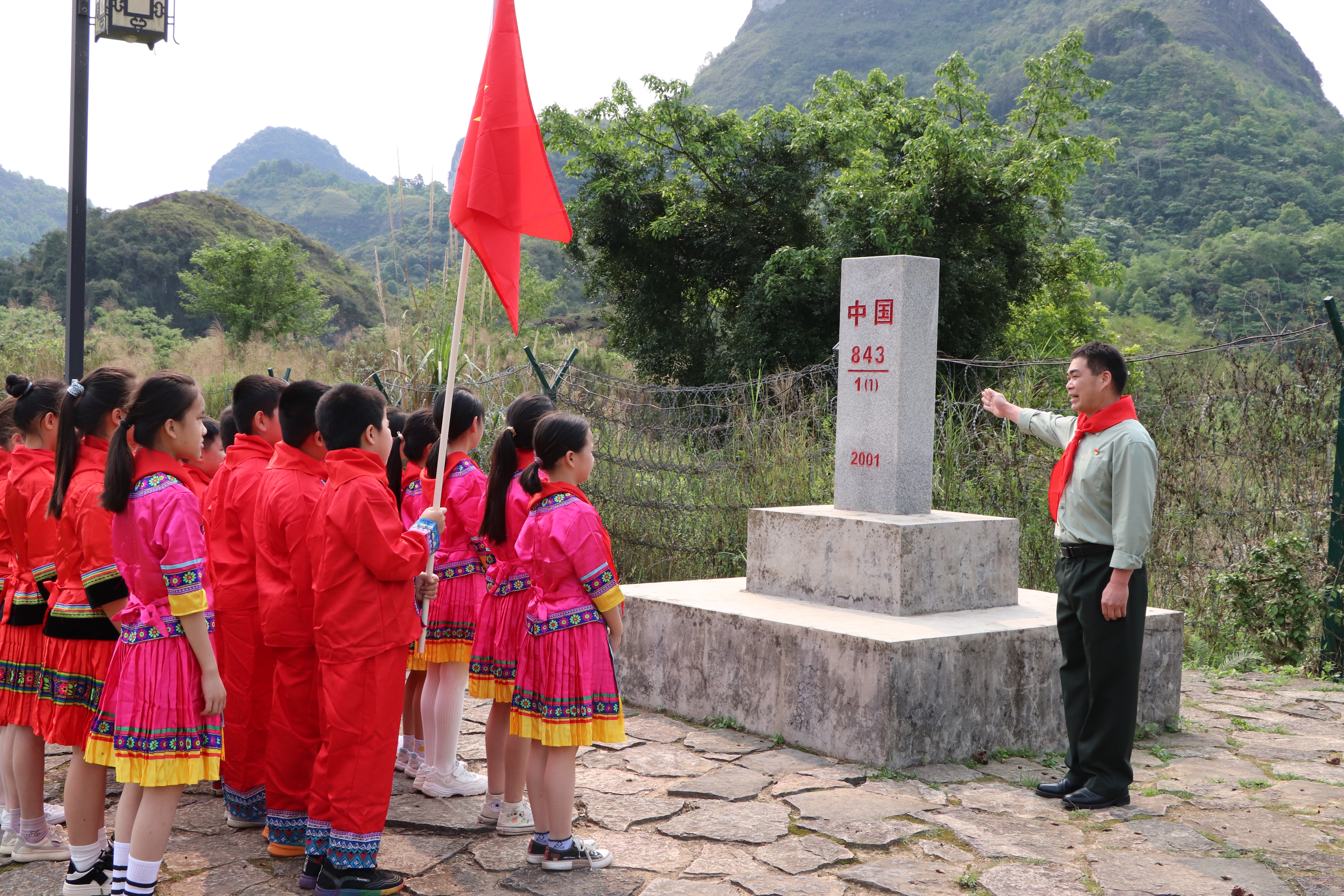 4月7日,由共青团大新县委员会、大新县教育局、大新县少工委联合在大新县老木棉旅游景区开展“少先队员心向党 百里红边护界碑”少先队校外实践教育活动。团县委、县教育局相关领导,县退役军人事务局负责人、老木棉旅游景区负责人、硕龙镇中心小学师生代表23人等参加了此次活动。