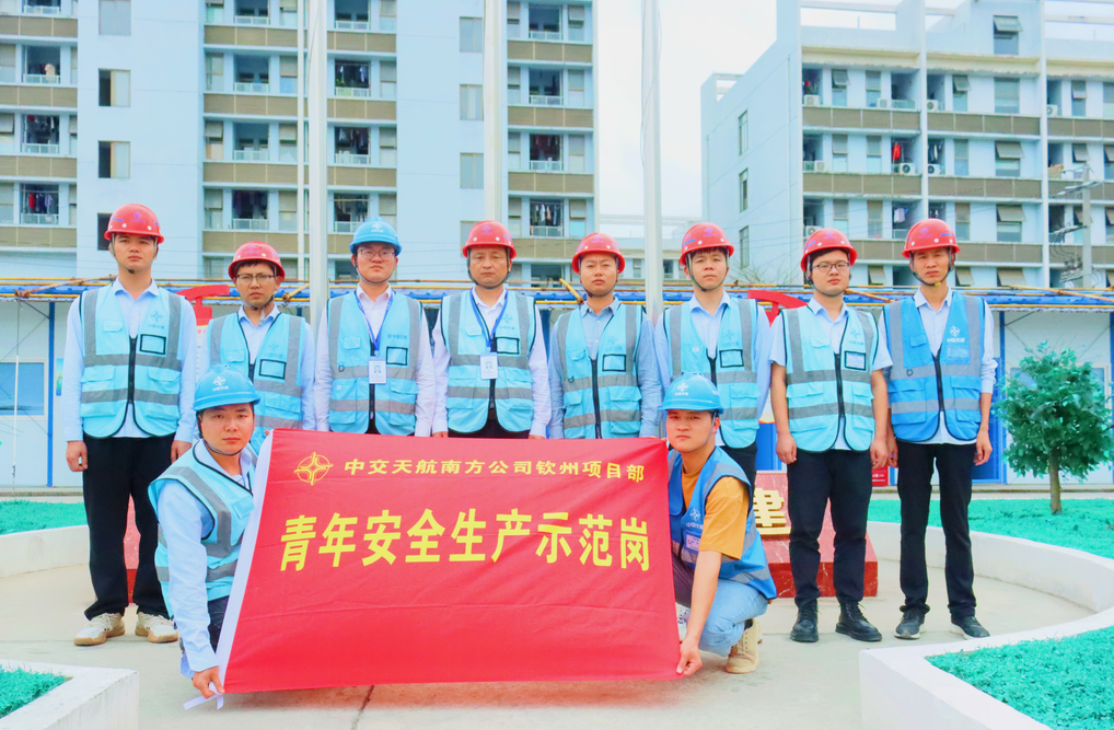 中交天航南方交通建设有限公司钦州项目经理部现有职工32人,35岁以下职工26人,青年占比达82%,团队平均年龄29岁,是项目安全生产的主力军、生力军。2022年以来,项目荣获2次钦州市“安全文明工地”“优质结构奖”等荣誉,荣获天航局青年安全生产示范岗和平安工地。