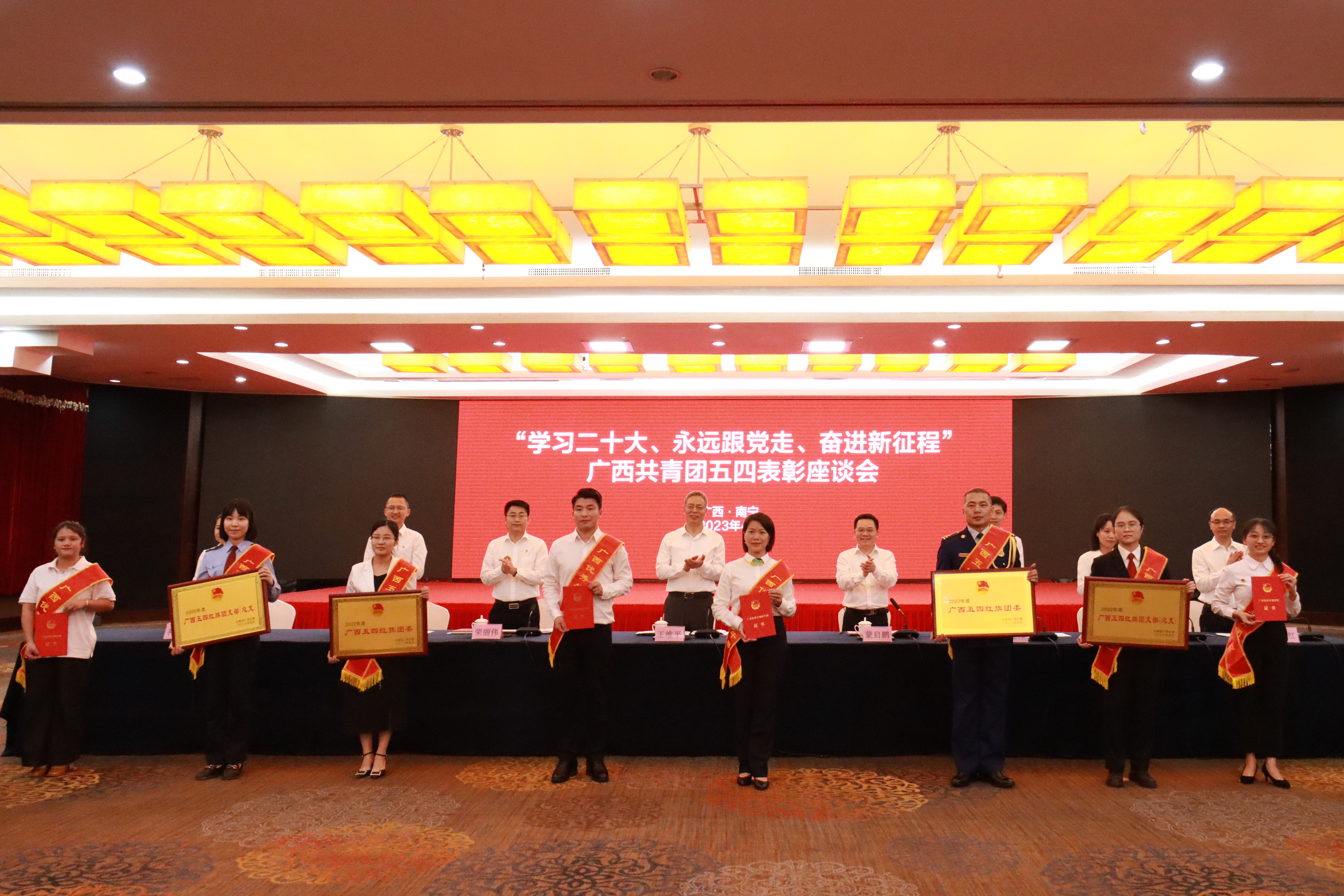 4月28日,“学习二十大、永远跟党走、奋进新征程”广西共青团五四表彰座谈会在南宁召开。自治区党委常委、组织部部长王维平出席会议并讲话,共青团广西区委书记蒙启鹏主持座谈会。