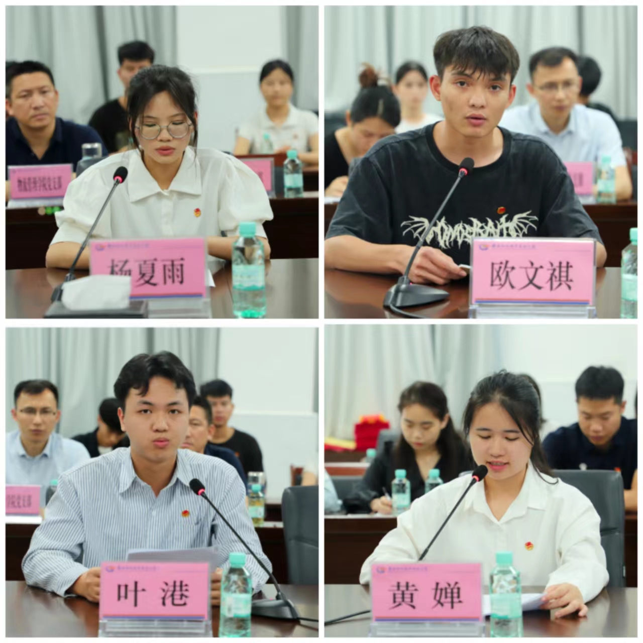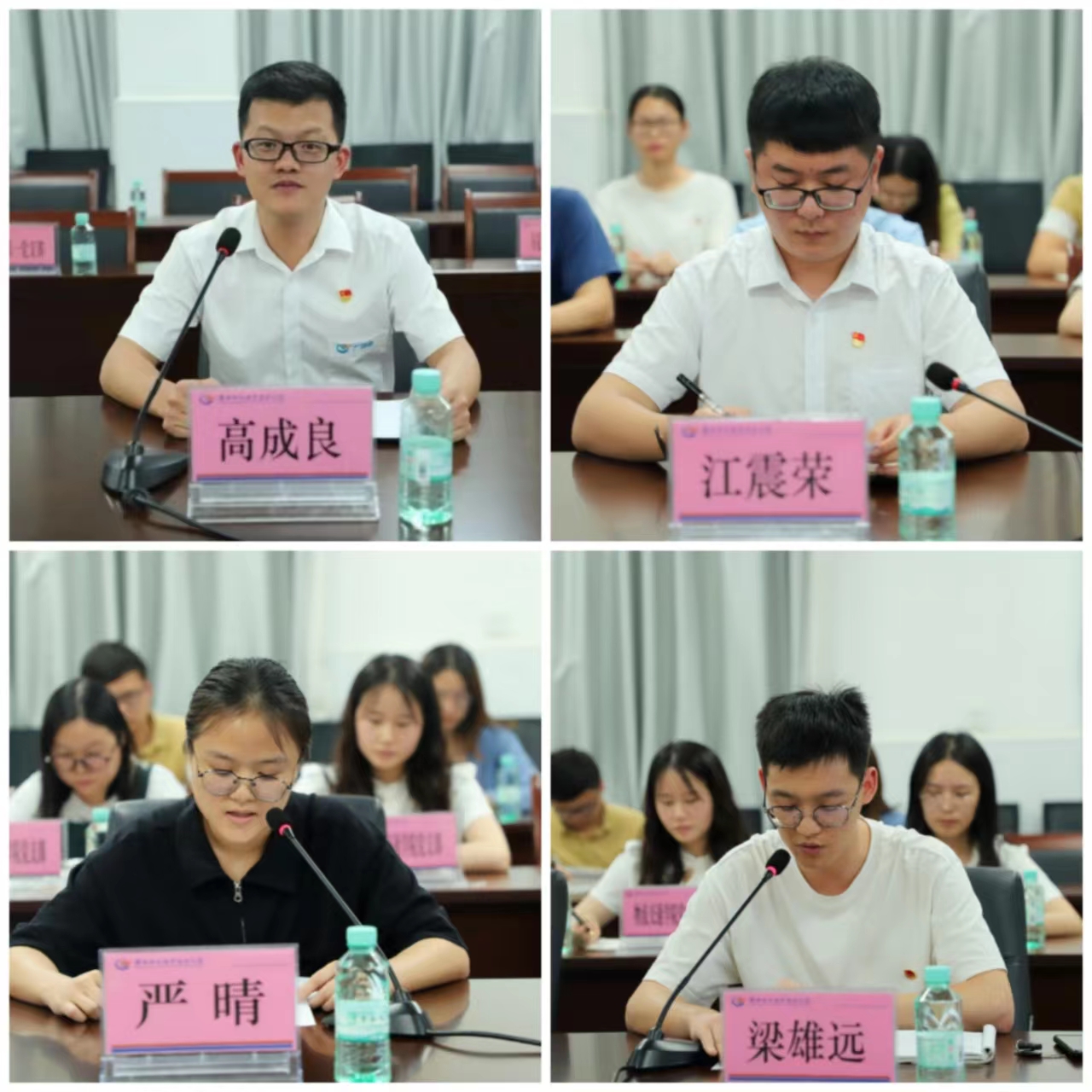 从教37年的老教师、马克思主义学院党支部书记、院长覃南图教授为青年师生作成长、发展经验传授。青年教师代表高成良、江震荣、严晴、梁雄远,学生代表杨夏雨、欧文祺、叶港、黄婵谈工作、学习、成长体会,并为学院发展献言。