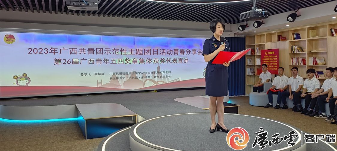 广西机场管理集团南宁吴圩国际机场有限公司安全检查站的翟娟凤介绍了“朱槿花”青年班组的先进事迹。为满足高标准的旅客出行需求,2009年3月,南宁机场安检站抽调了8名优秀的安检员组成的清一色女子班组,并以一朵盛开的南宁市市花——朱槿花为LOGO,正式成立“朱槿花”班组。如今,“朱槿花”班组已发展成为一支拥有42名成员、平均年龄26岁的青年班组。建队13年来,“朱槿花”班组将“政治素质优、岗位技能优,工作业绩优、群众评价优”贯穿在工作的全过程,圆满完成中国-东盟博览会、中国-东盟商务与投资峰会、南宁国际民歌艺术节、世界体操锦标赛等重要保障,派遣骨干支援“一带一路”国际合作高峰论坛、G20峰会、博鳌亚洲论坛等重要保障任务,并保持着0投诉的纪录。