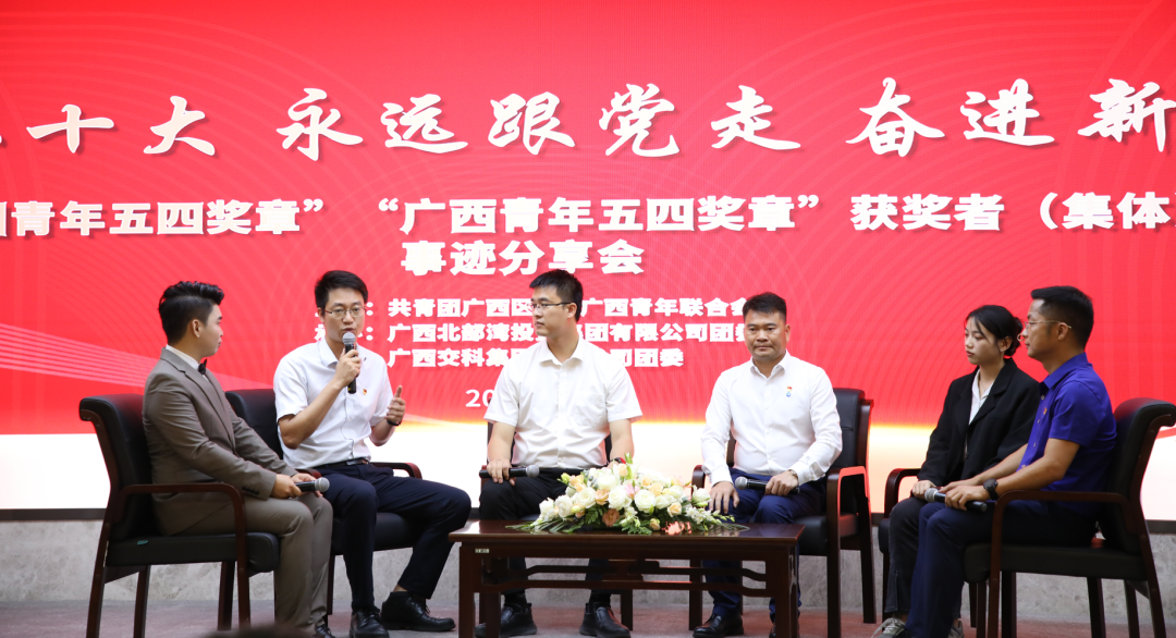 青春心向党,建功新时代。5月24日下午,为深入学习习近平新时代中国特色社会主义思想和党的二十大精神,集中展现当代青年精神品格和价值追求,激励团员青年以饱满的精神状态投身于中国特色社会主义壮美广西建设,由共青团广西区委、广西青年联合会主办,广西北部湾投资集团有限公司团委承办,广西交科集团有限公司团委协办的“学习二十大 永远跟党走 奋进新征程”——“中国青年五四奖章”“广西青年五四奖章”获得者(集体)事迹分享会在广西北投集团直属企业广西交科集团有限公司举行。