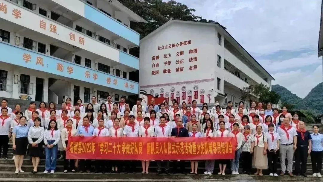 5月26日,共青团阳朔县委员会、阳朔县教育局、阳朔县少工委在福利镇中心小学开展“学习二十大 争做好队员”新队员入队仪式示范活动。