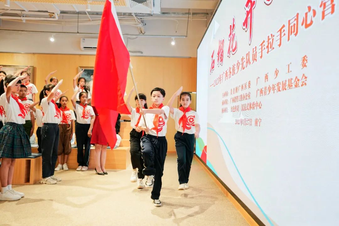 5月27日-28日,由共青团广西区委、广西少工委主办,广西希望工程办公室、广西青少年发展基金承办的“石榴花开一家亲”——2023年广西各族少先队员手拉手同心营活动在《红色传奇》沉浸式体验中心开营。
