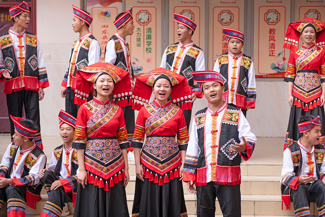 壮族“三月三”期间,百色市田东县将本土山歌与廉洁文化相结合,通过山歌“唱廉”的方式增强廉洁文化吸引力感染力。图为该县滨江学校清廉山歌节目表演现场。 覃嫱嫱/摄