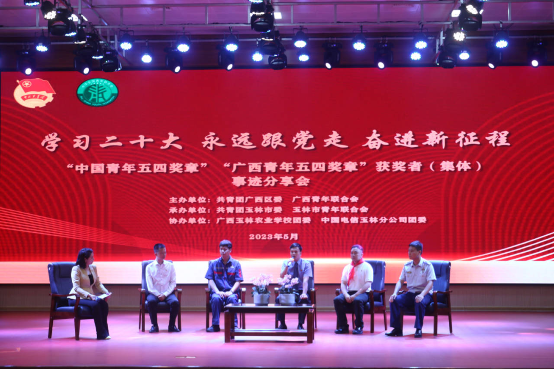 为深入学习习近平新时代中国特色社会主义思想和党的二十大精神,集中展示新时代团员青年的精神品格和价值追求,激励团员青年以饱满的精神状态投身于中国特色社会主义壮美广西建设,5月30日下午,由共青团广西区委、广西青年联合会主办,共青团玉林市委、玉林市青年联合会承办,广西玉林农业学校团委、中国电信玉林分公司团委协办的“学习二十大 永远跟党走 奋进新征程”——“中国青年五四奖章”“广西青年五四奖章”获奖者(集体)事迹分享会在广西玉林农业学校学术报告厅举行,共青团广西区委、共青团玉林市委、各团组织相关领导出席会议,全市各界青年代表500余人现场聆听了分享会。此次分享会同步在网络进行线上直播,全区团员青年通过网络同步收看。