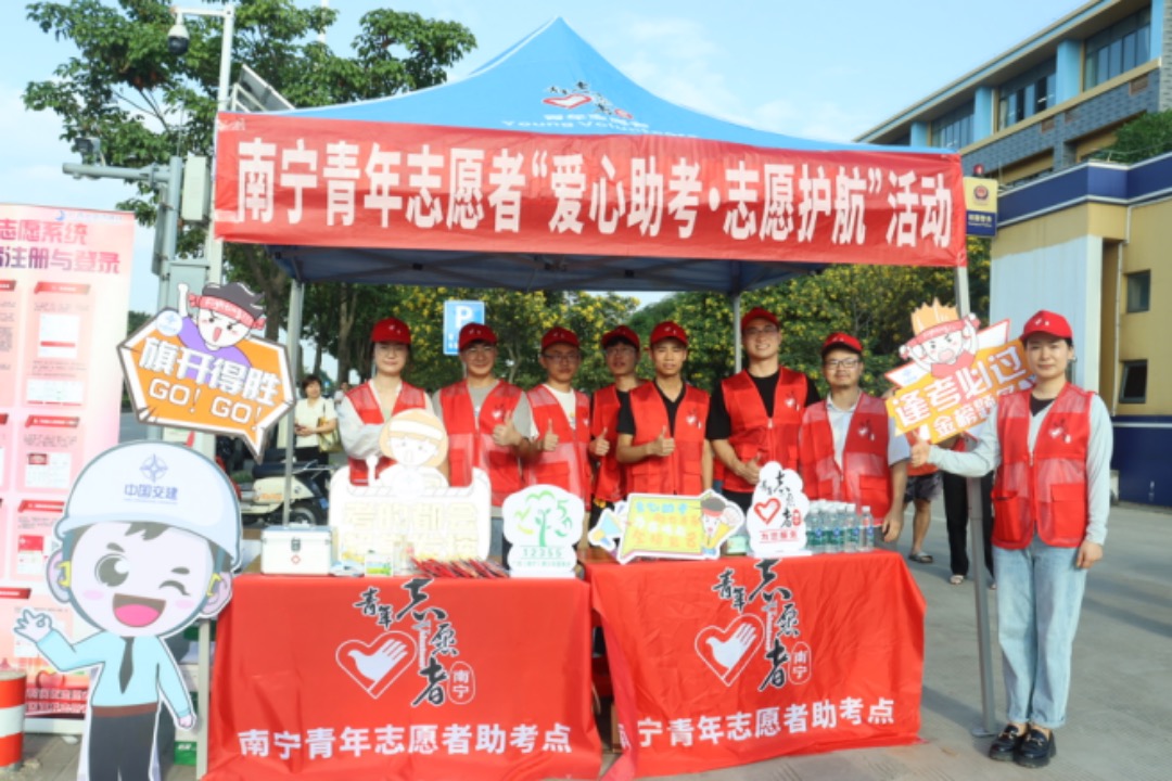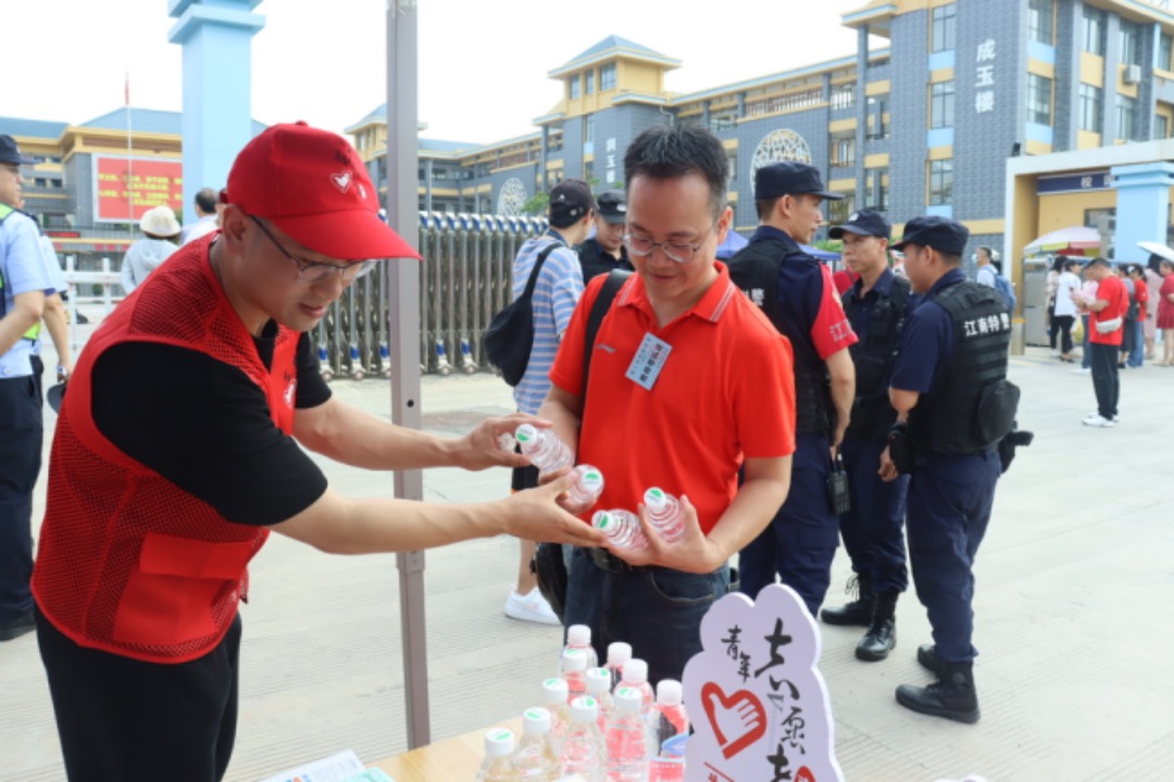 藿香正气液、驱蚊水、风油精、小扇子.....6月7日,当南宁市的高考考生们奔赴考场时,中交一公局集团有限公司四公司团委在共青团南宁市委统一部署下,联合南宁江南区妇幼保健院项目火热开启“爱心助考”模式,在校区设立爱心服务点,为候考考生及家长免费提供饮用水、文具、纸巾及防暑降温用品等,并在项目驻地设立家长、考生休息区,提供暖心服务。助考期间,志愿者们的热情服务获得广大考生及家长的一致好评,还受到南宁电视台的采访报道。