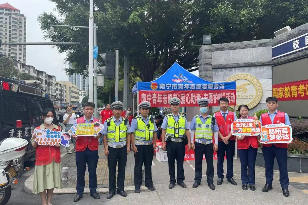 6月7日-8日,共青团南宁市委联合市城市管理综合行政执法局、市公安局、市教育局、南宁轨道交通集团有限责任公司、南宁广播电视台以及爱心企业等单位,在高考期间开展2023年南宁市青年志愿者“爱心助考·志愿护航”志愿服务活动,为绿城高考学子梦想保驾护航。
